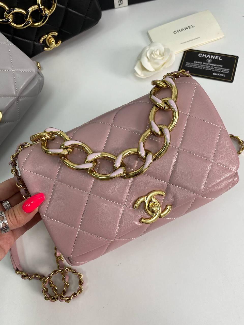 Сумка женская Chanel LUX-80251 — это воплощение изысканности и стиля. Сумка выполнена в нежно-розовом цвете, стеганая текстура придает ей элегантный вид. Этот аксессуар станет идеальным дополнением к любому образу.