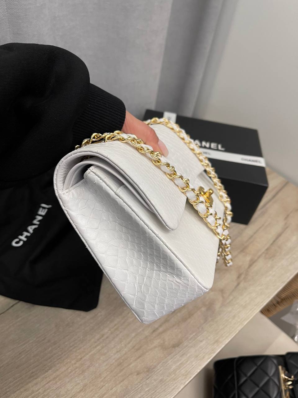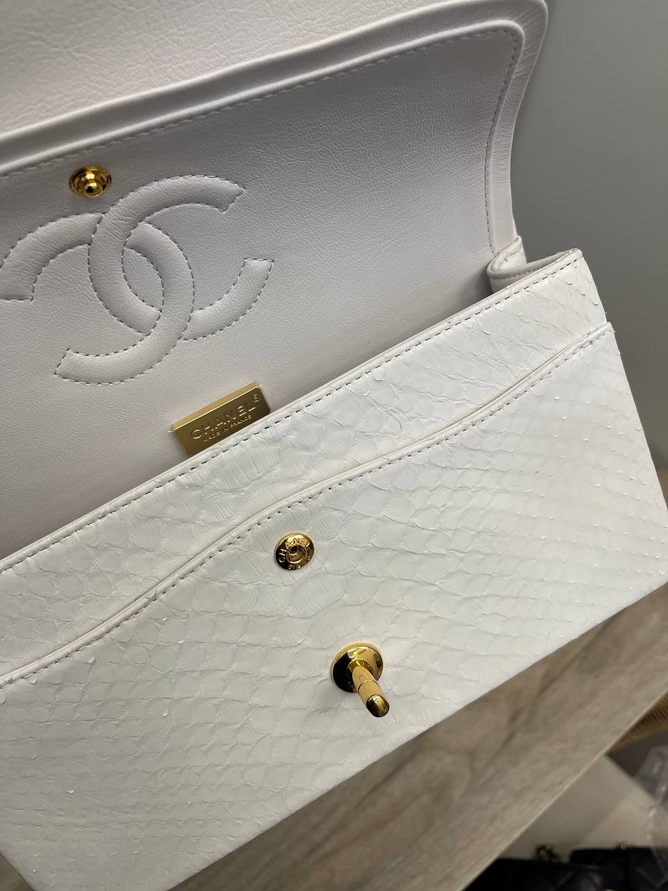 Сумка женская Chanel LUX-115692, воплощение элегантности и стиля. Эта сумка выполнена в классическом дизайне, который подчеркивает изысканность и безупречный вкус. Белый цвет в сочетании с золотистой фурнитурой придает сумке особую привлекательность и делает ее идеальным аксессуаром для любого случая.