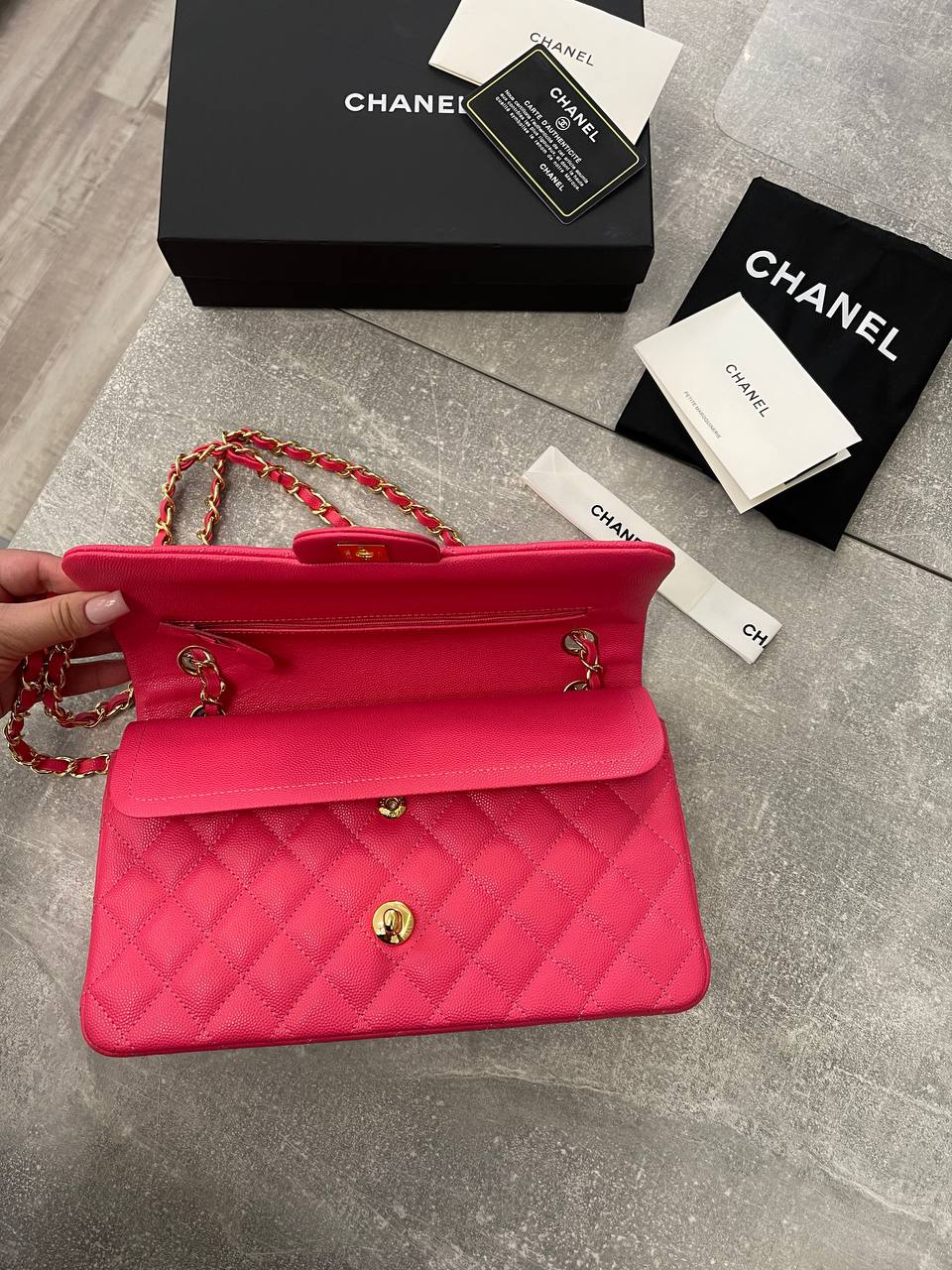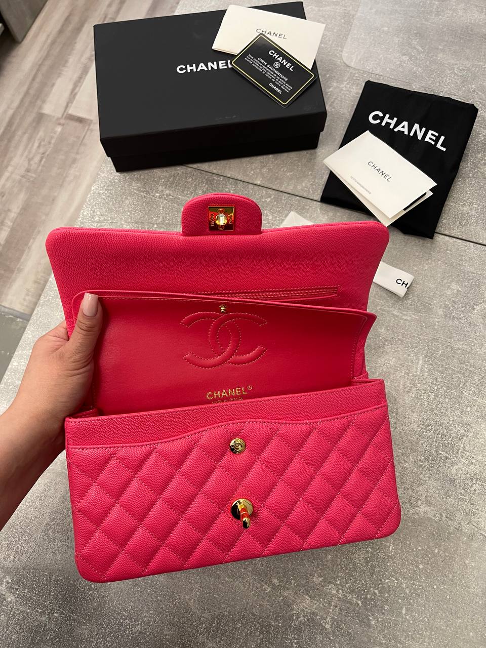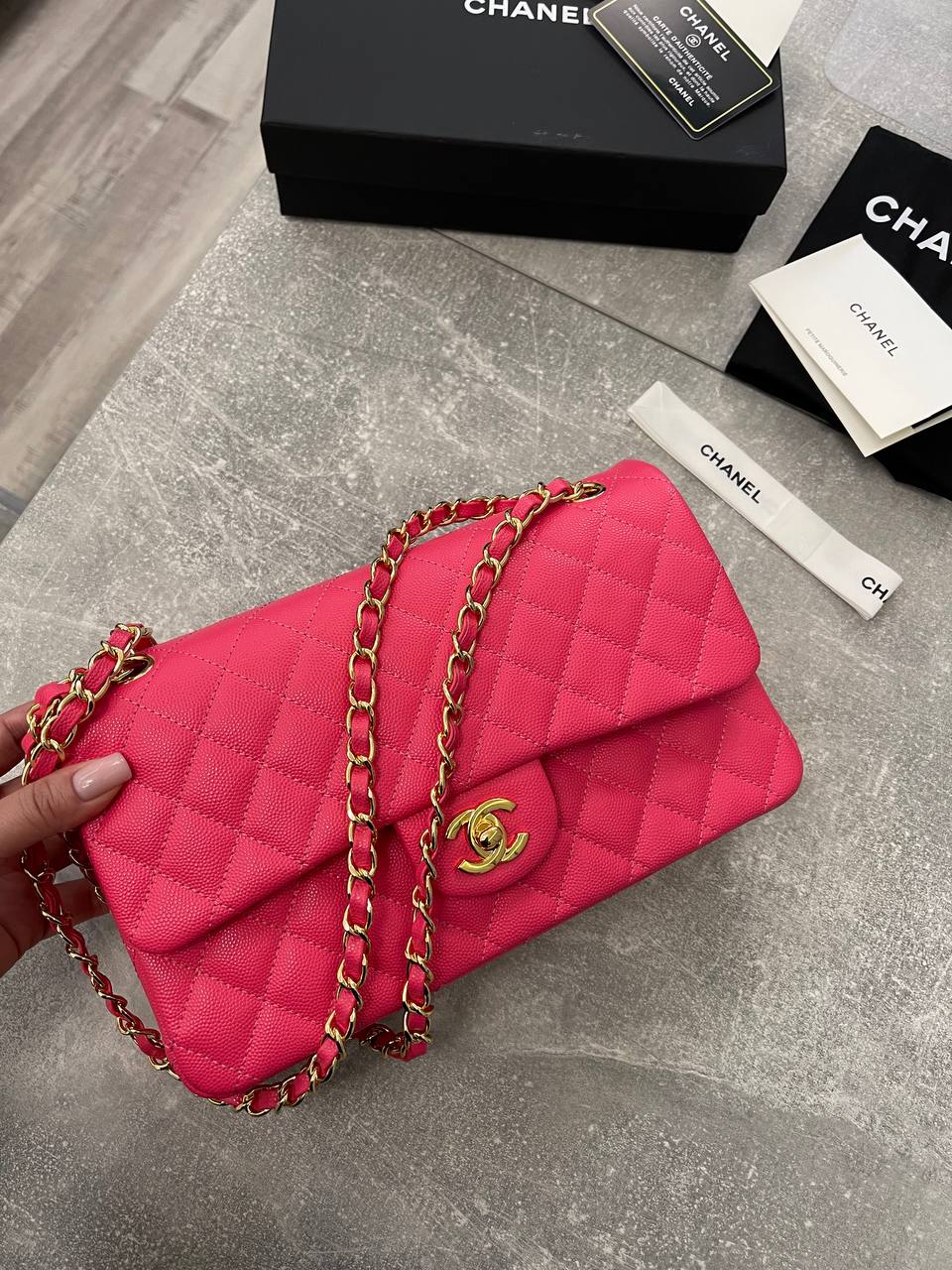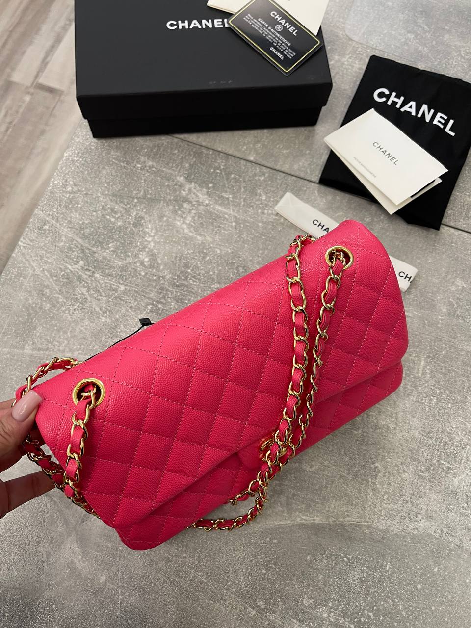 Женская сумка Chanel LUX-103651 представляет собой воплощение элегантности и роскоши. Сумка выполнена в ярко-розовом цвете, с узнаваемой стеганой текстурой, которая придает ей изысканный вид. Этот аксессуар идеально подходит для завершения любого образа, будь то повседневный или вечерний.