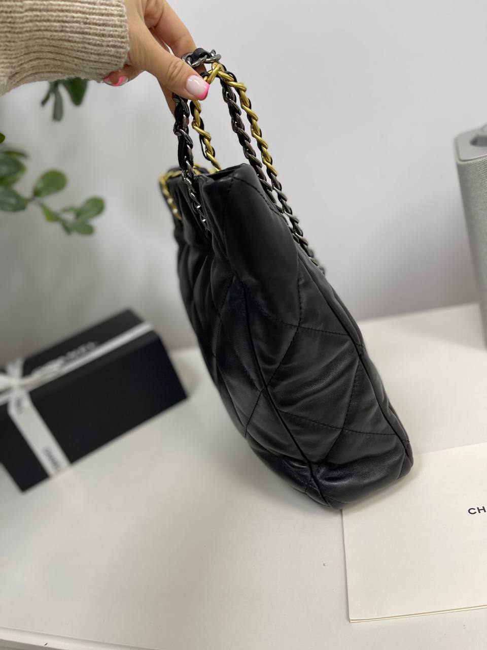 Сумка женская Chanel LUX-83572 представляет собой стильную сумку-шоппер, выполненную в классическом дизайне. Черный цвет, стеганая текстура и узнаваемая фурнитура придают изделию элегантный и узнаваемый вид. Эта сумка станет идеальным аксессуаром для повседневной носки, подчеркивая индивидуальность и вкус своей обладательницы.
