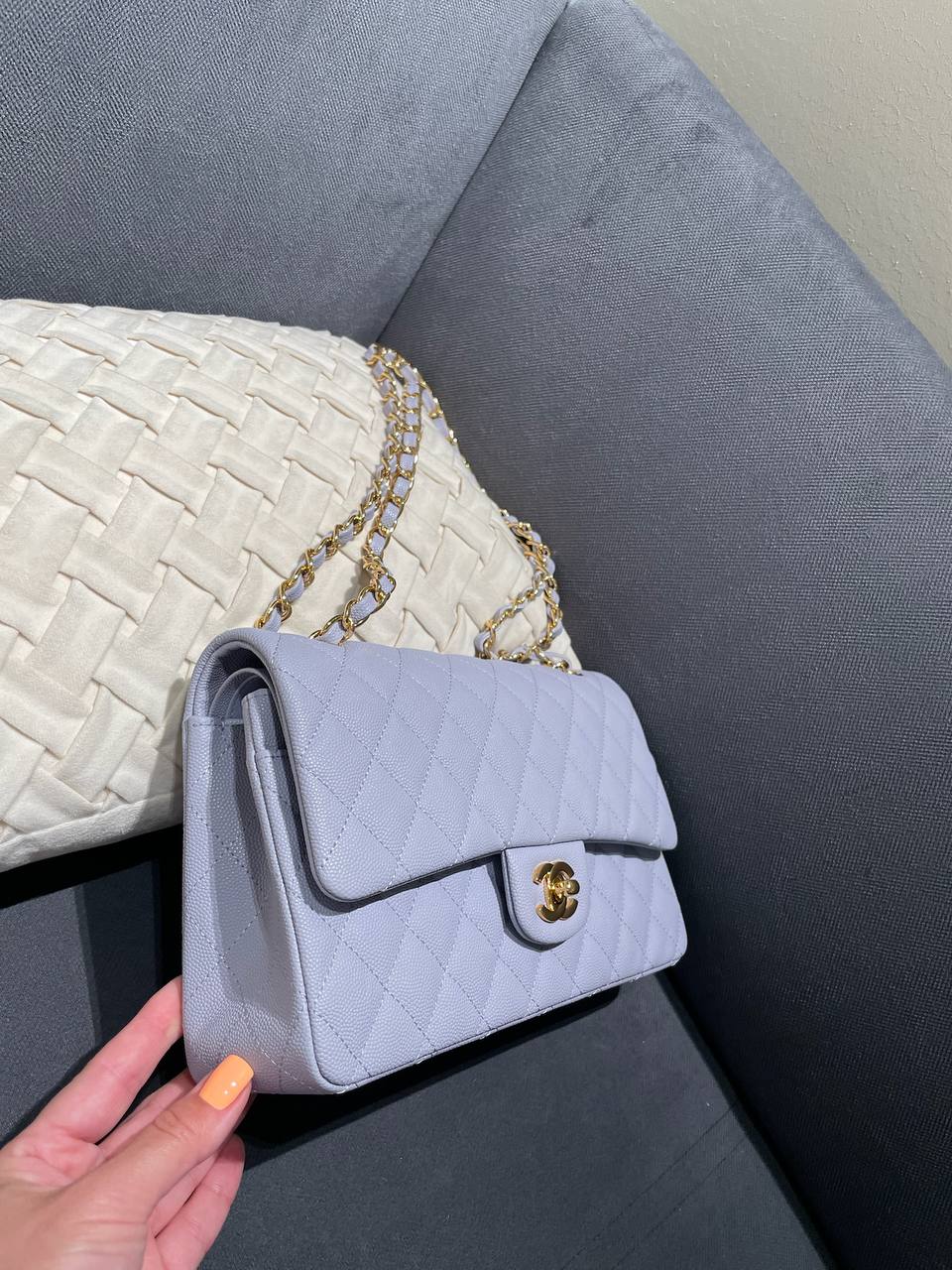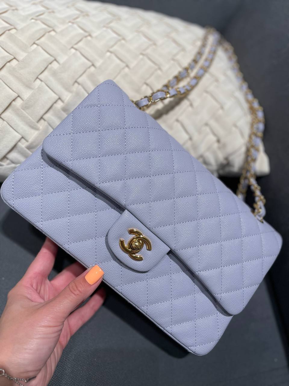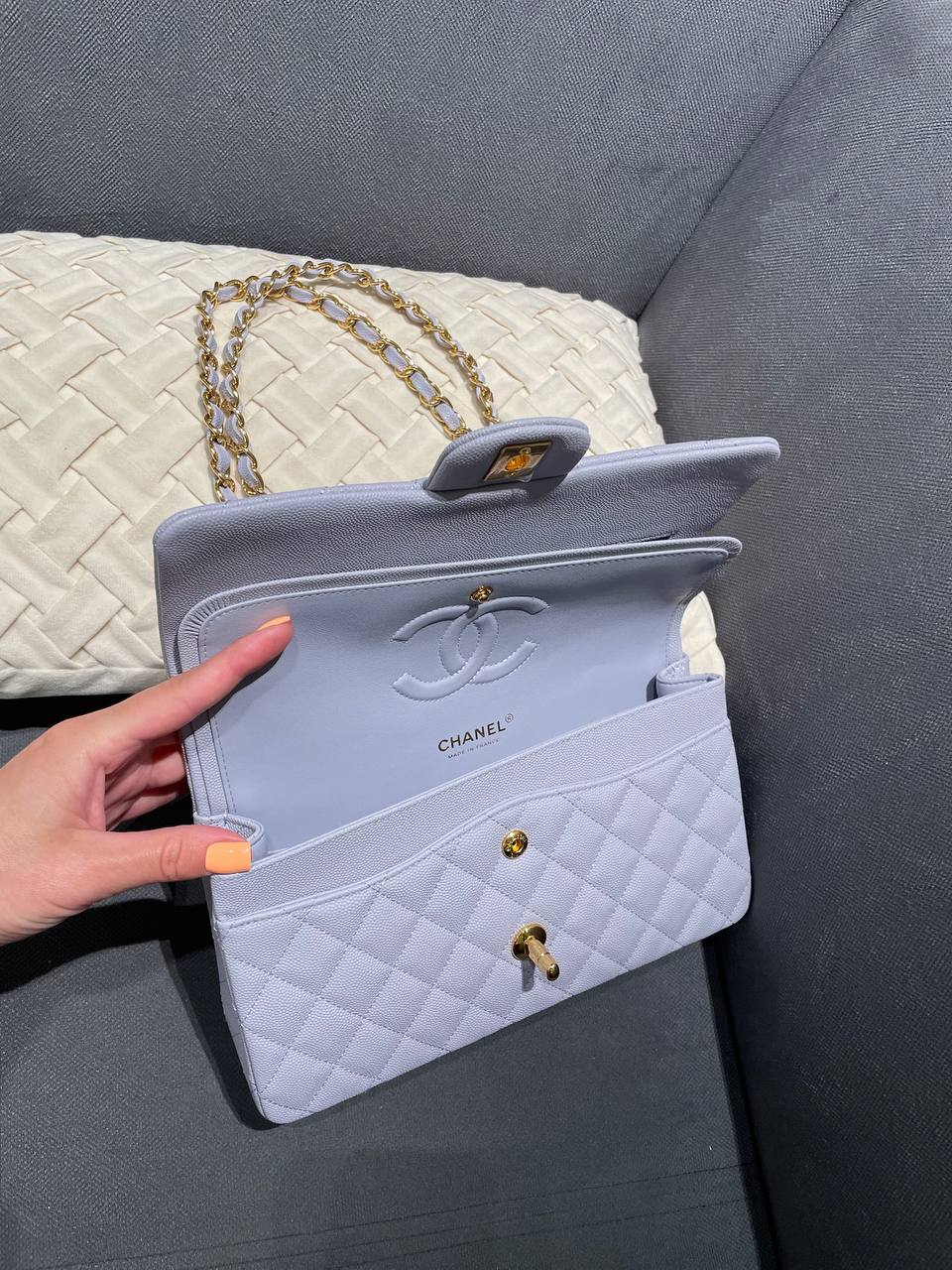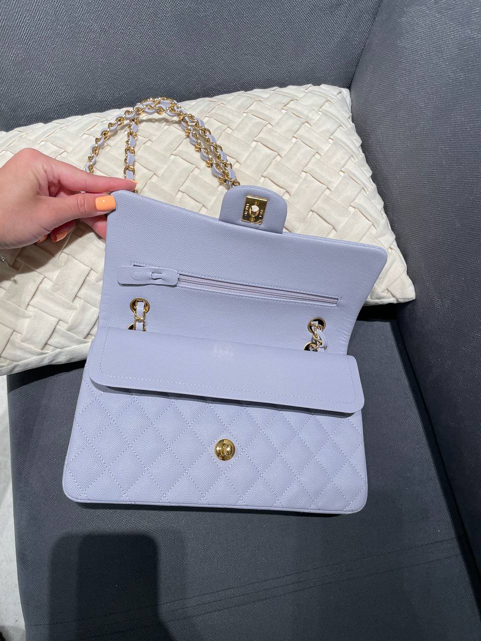 Сумка женская Classic Chanel LUX-120037 – это изысканный аксессуар от известного бренда. Она выполнена в элегантном стиле, украшена ромбовидной стежкой и имеет узнаваемую фурнитуру. Сумка выполнена в нежно-голубом цвете, который придает ей свежий и утонченный вид.