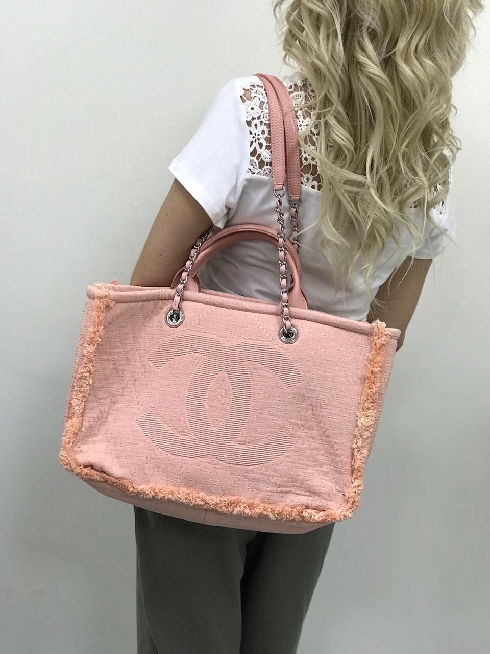 Сумка женская SHOPPING Chanel LUX-13317 представляет собой стильный и вместительный аксессуар, выполненный в нежно-розовом цвете. Дизайн сумки подчеркнут узнаваемым логотипом бренда, а края обработаны бахромой, что придает ей особый шарм. Эта модель идеально подходит для повседневного использования, позволяя носить с собой все необходимое.