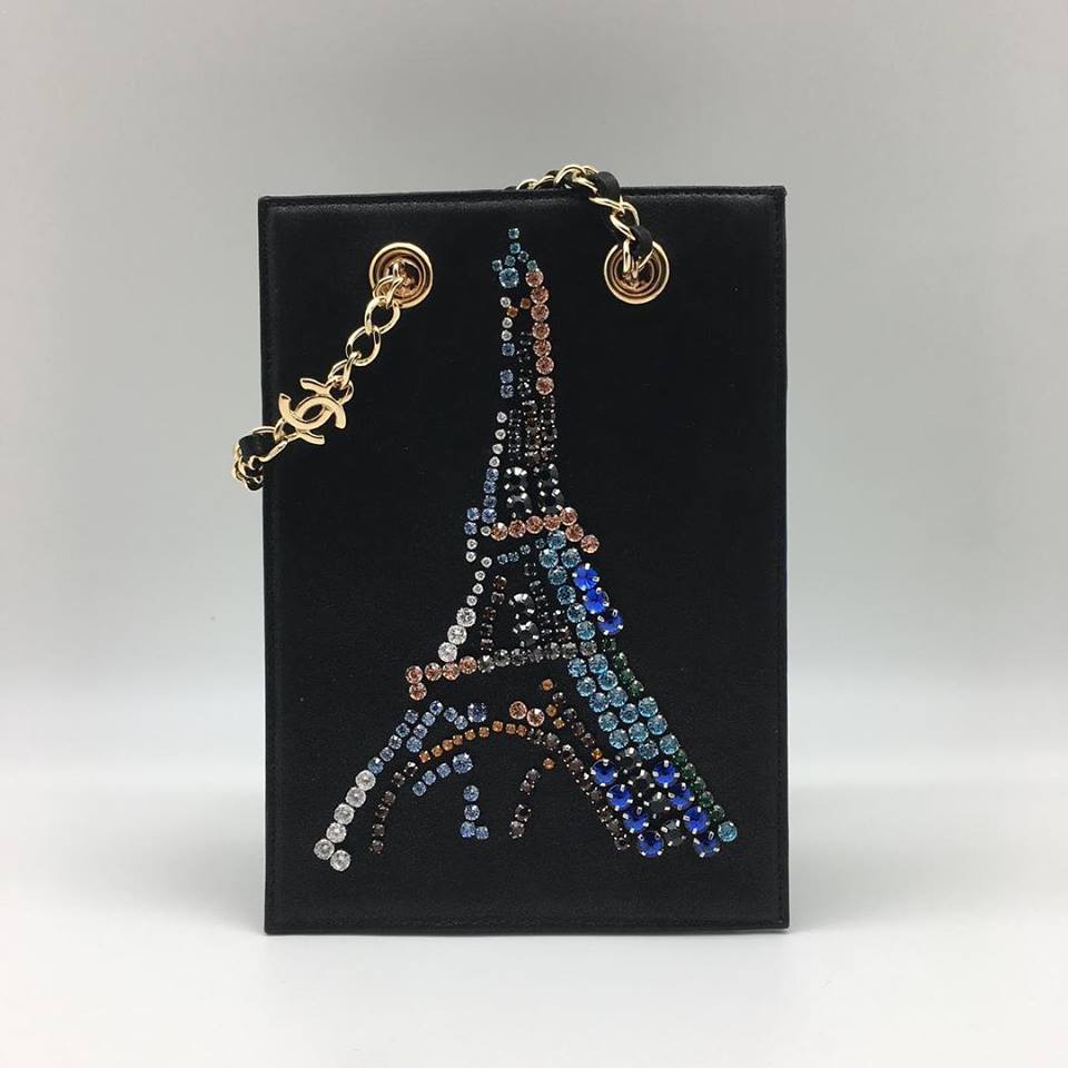Эта женская сумка Chanel СЖ-737 выполнена в элегантном стиле, идеально подходящем для создания вечерних и дневных образов. Черный цвет и изысканный дизайн с изображением Эйфелевой башни, украшенной стразами, делают ее уникальным аксессуаром. Сумка оснащена золотистой цепочкой, добавляющей нотку роскоши.
