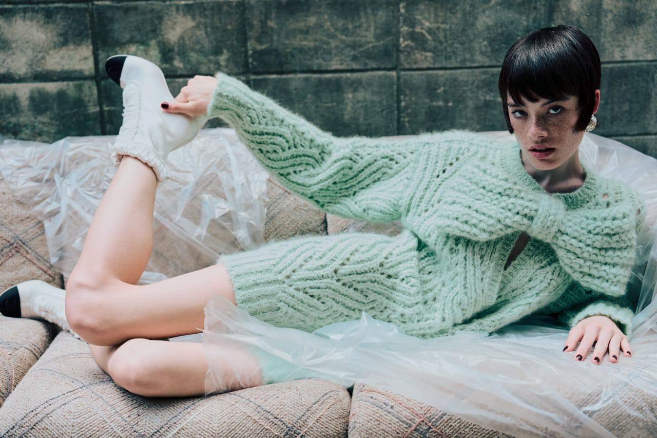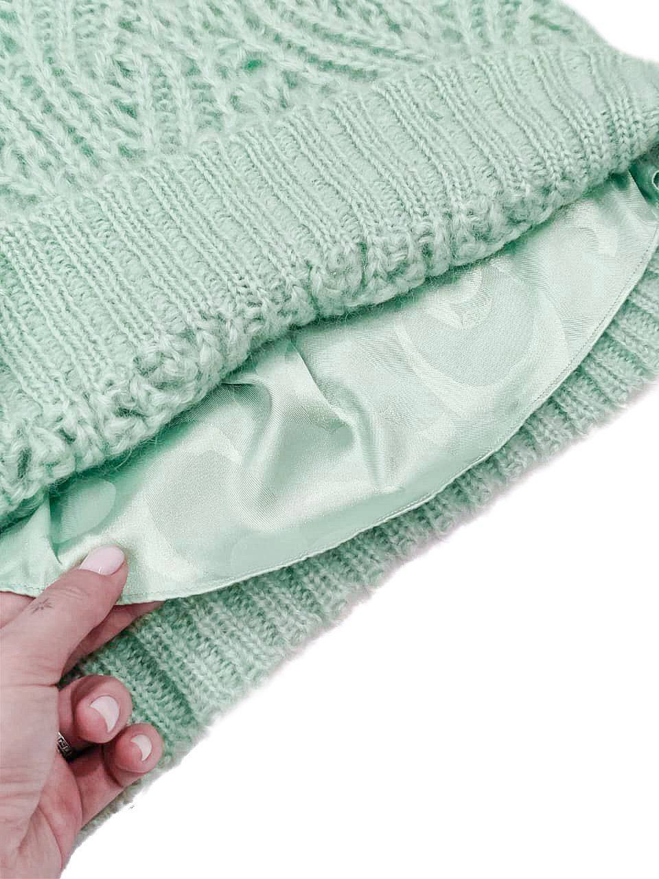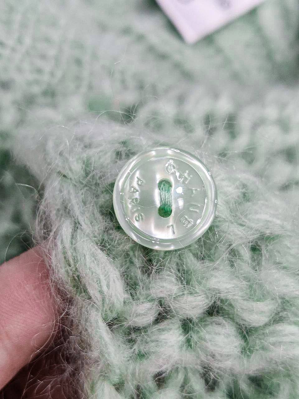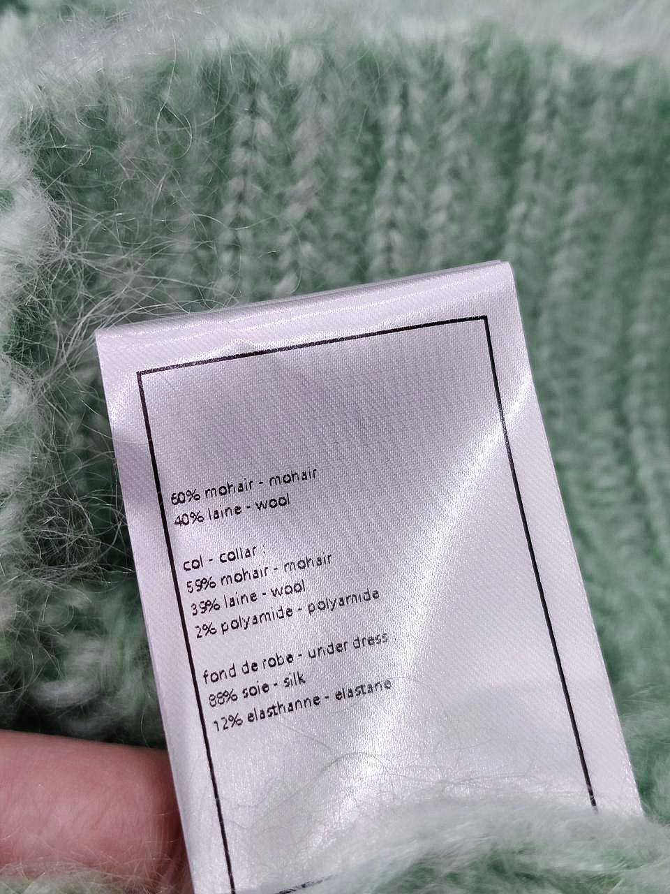 Этот свитер от Chanel является воплощением стиля и изысканности. Модель выполнена в нежном мятном оттенке и украшена объемным бантом, что придает образу неповторимый шарм.