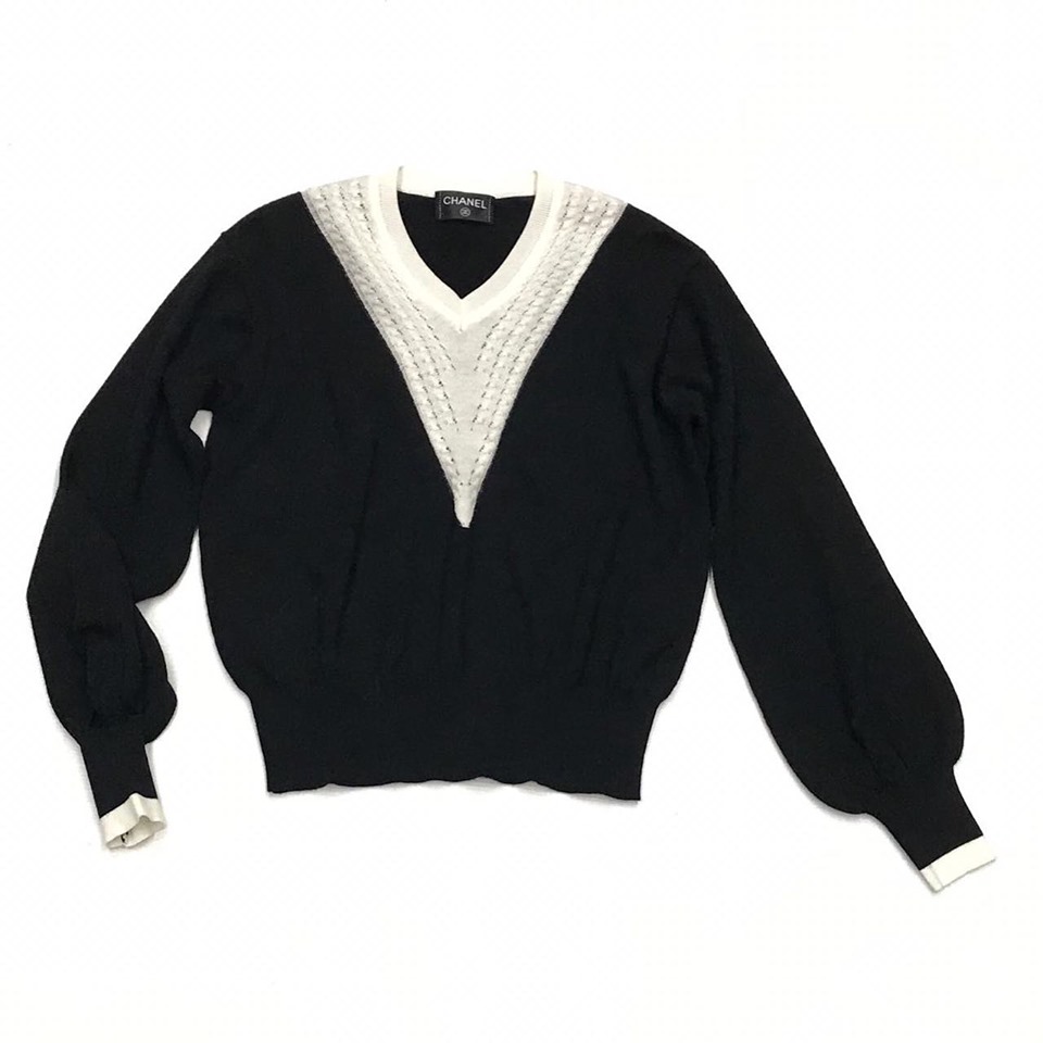 Женский свитер Chanel LUX-20596 представляет собой элегантную модель, сочетающую классический черный цвет с контрастным белым V-образным вырезом, украшенным оригинальным плетением. Этот свитер, выполненный в стиле casual, идеально подойдет для создания стильных и утонченных образов. Объемные рукава и манжеты с белой отделкой придают модели особый шик.