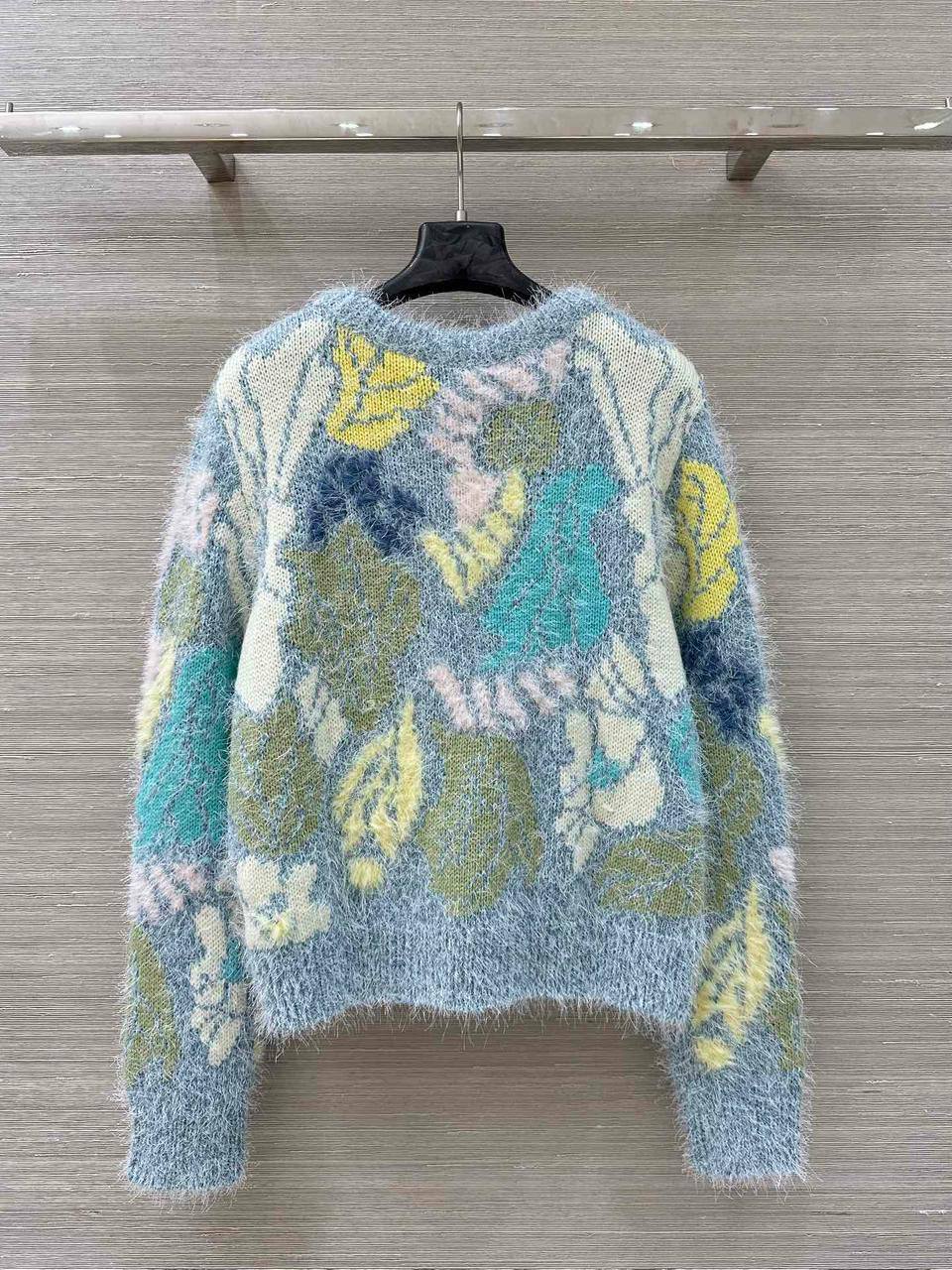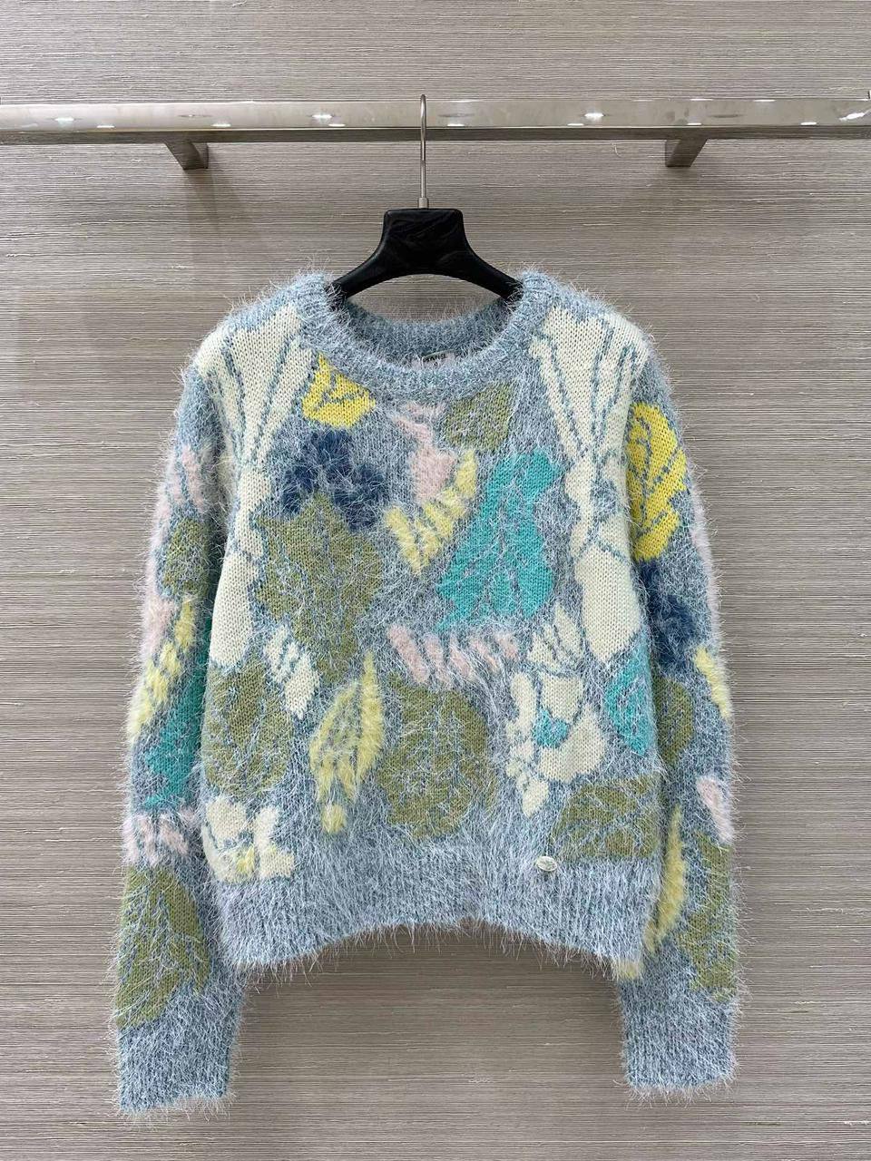 Женский свитер Chanel – стильная и уютная модель в пастельных тонах с оригинальным цветочным принтом. Он идеально подходит для создания повседневных и элегантных образов.