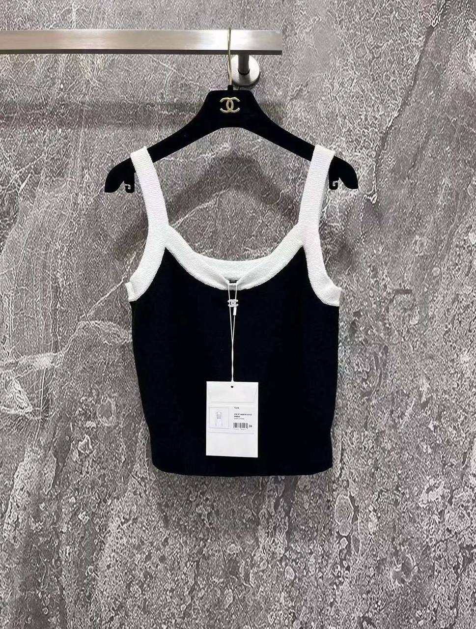 Топ Chanel LUX-88671 выполнен в классическом стиле, сочетающем элегантность и комфорт. Основной цвет черный с контрастной белой отделкой, придающей изделию изысканность. Этот топ станет отличным выбором для создания стильных повседневных и вечерних образов.