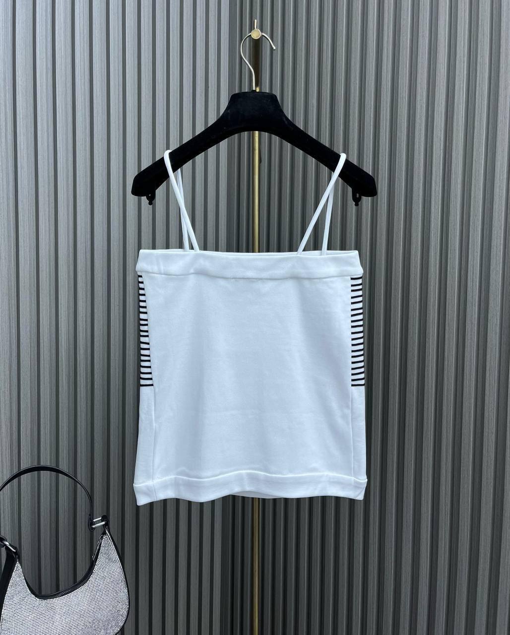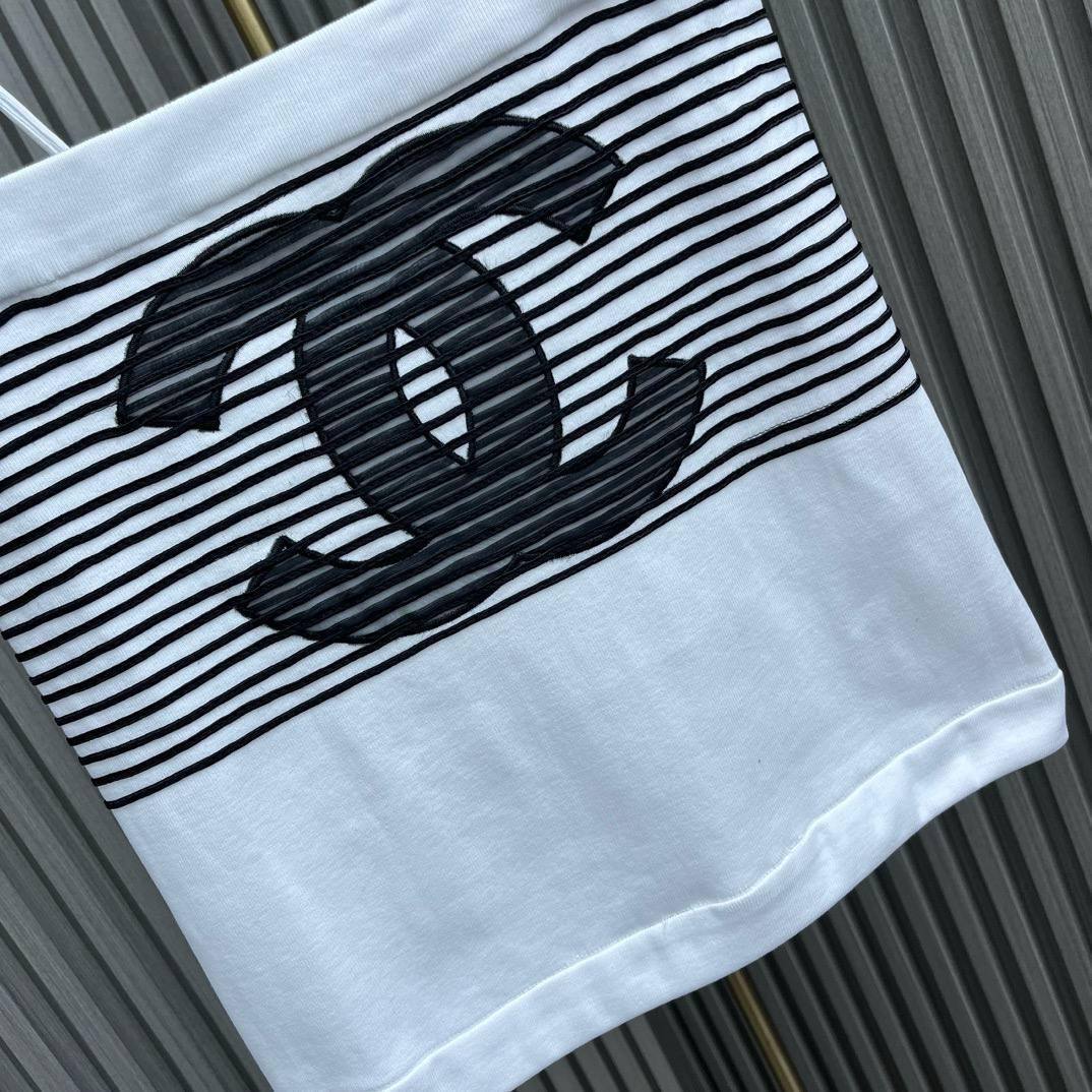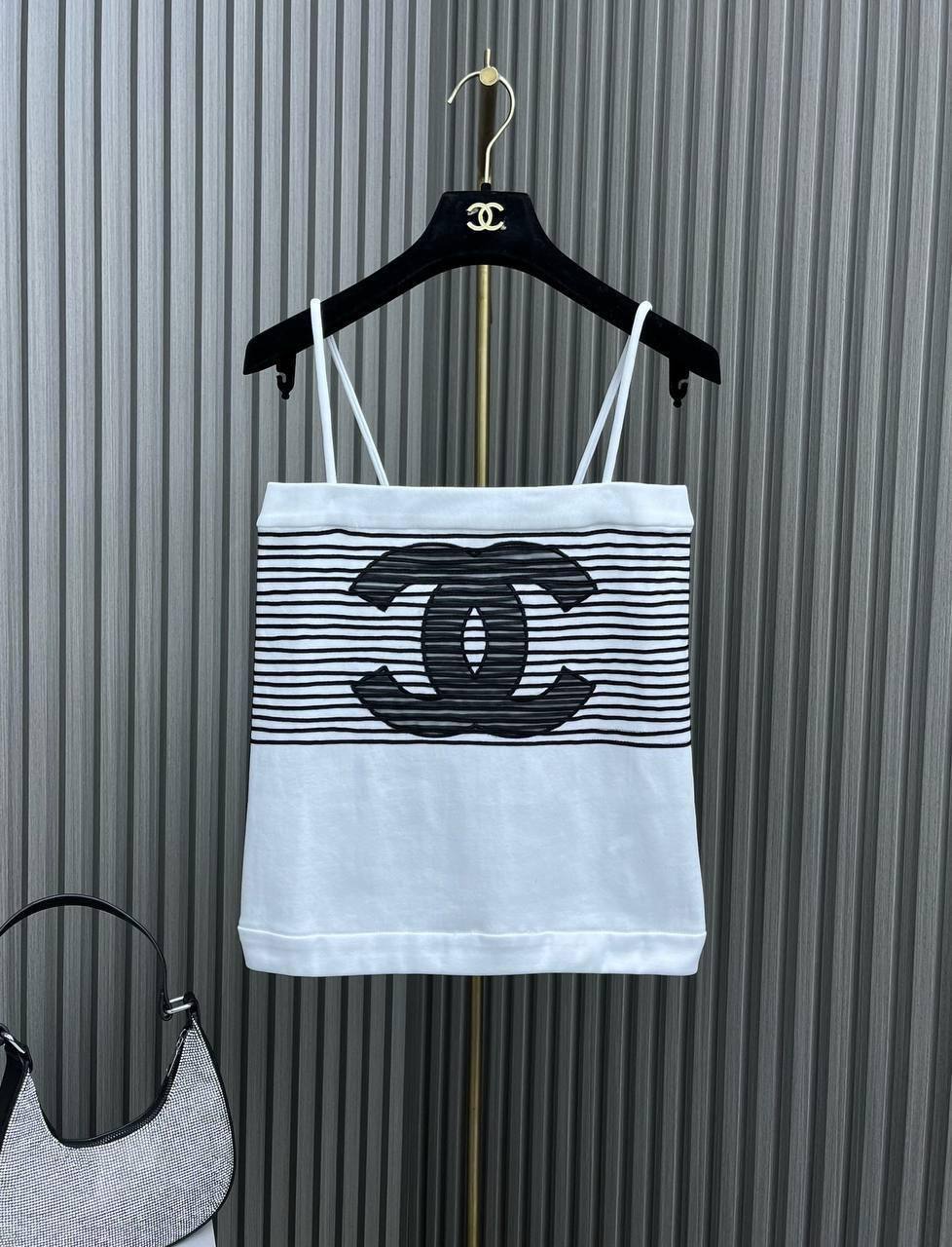 Топ Chanel LUX-105200 - это стильный элемент гардероба от известного бренда. Топ выполнен в классическом стиле, сочетающем белый цвет с черными полосами и акцентом на логотипе бренда. Идеально подходит для создания элегантных и современных образов.