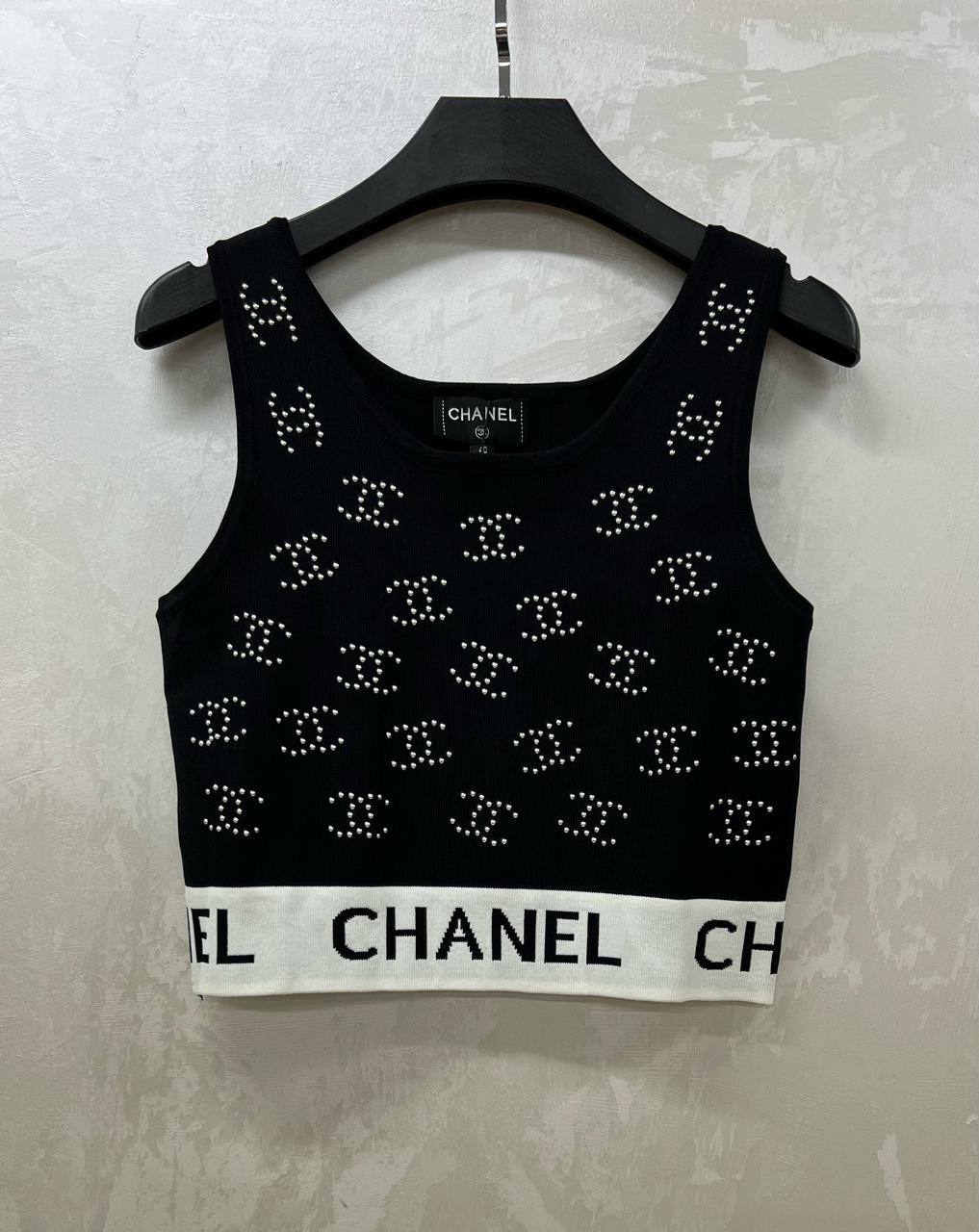 Топ Chanel LUX-118419 представляет собой стильный предмет гардероба в классическом стиле Chanel. Топ черного цвета с белыми элементами, текстура выполнена в виде трикотажа с рельефным узором. Этот топ идеально подойдет для создания элегантных и модных образов.