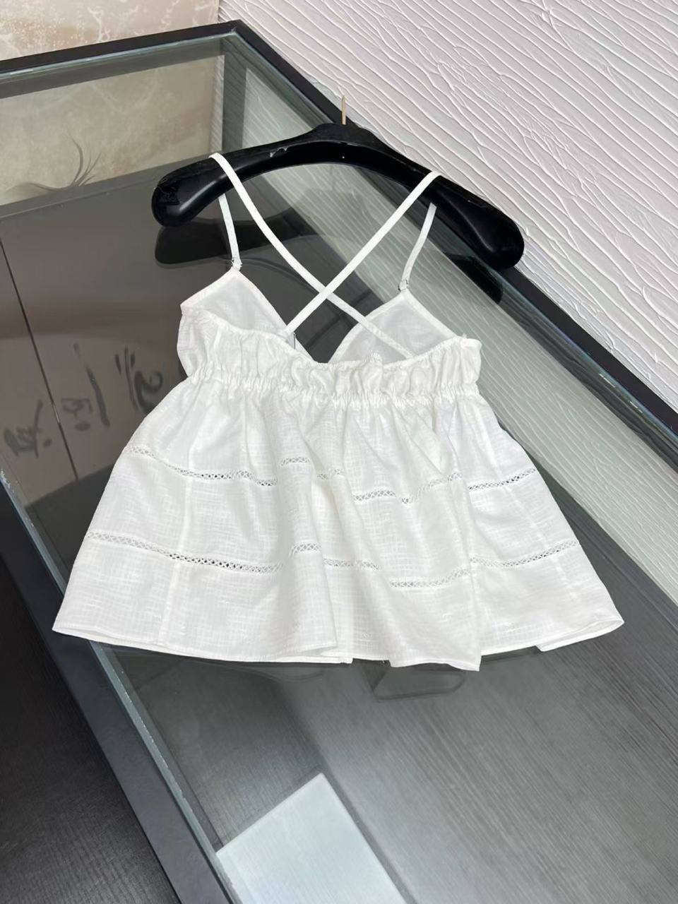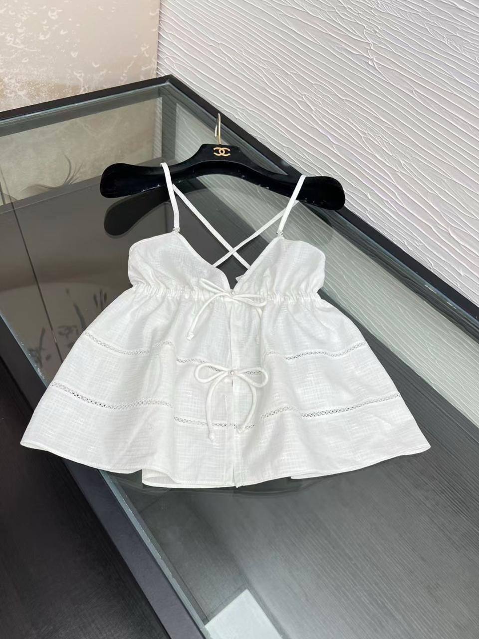 Топ Chanel LUX-119315 - это воплощение изысканности и стиля. Белоснежный топ, выполненный в легком и воздушном стиле, подчеркивает женственность и элегантность. Этот топ идеально подойдет для создания летних образов, сочетая в себе комфорт и неповторимый шарм.
