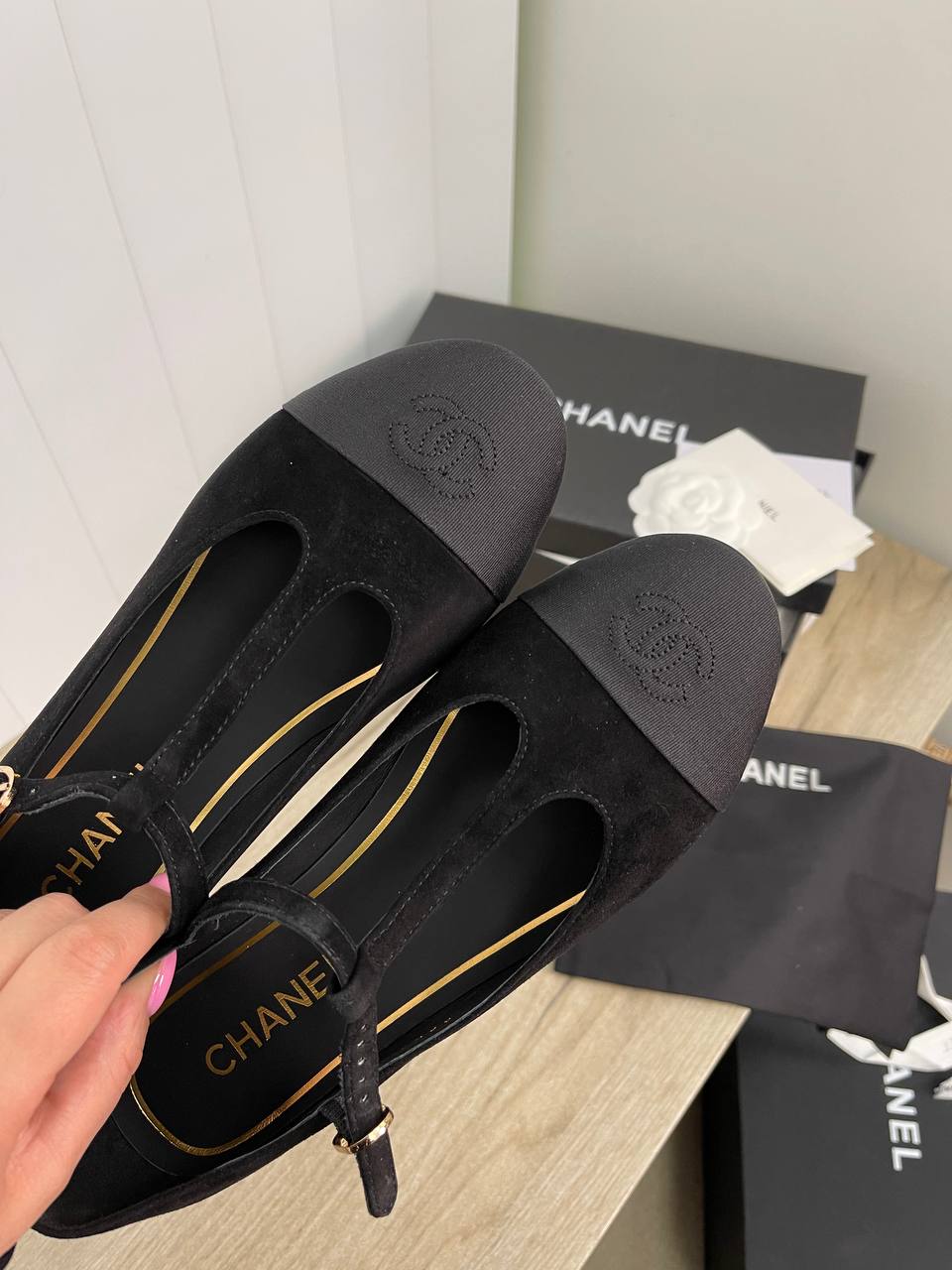 Туфли Chanel LUX-85607 – это воплощение элегантности и стиля от известного бренда. Черные туфли-балетки с закрытым носком и ремешком на щиколотке, выполненные из замши, подчеркивают изысканность. Эта модель идеально подходит для создания утонченных образов.