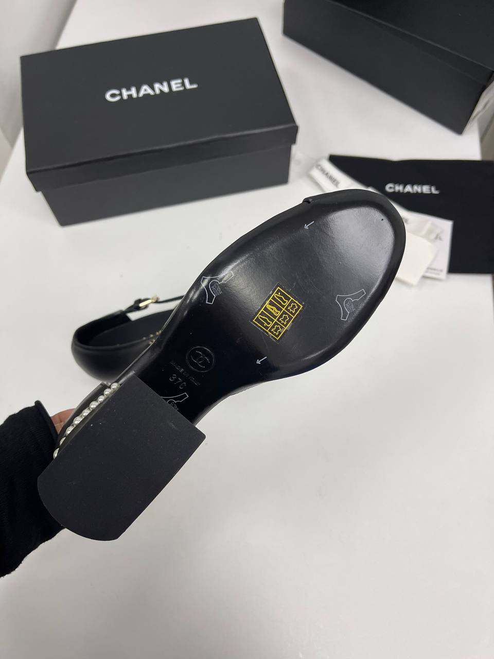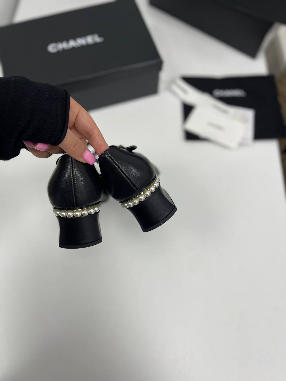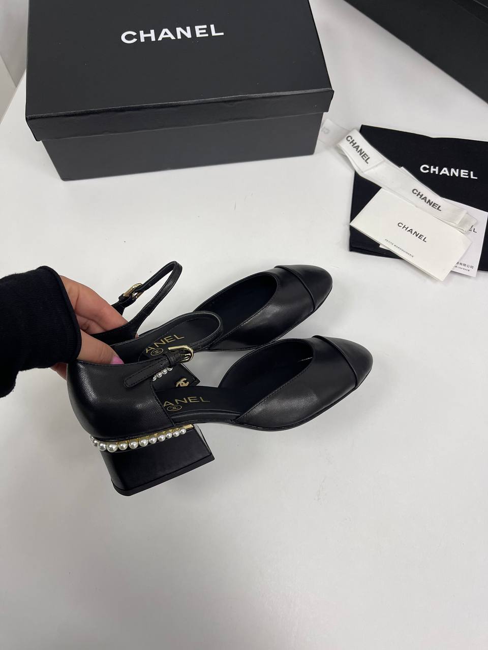 Туфли Chanel LUX-86072 - изысканная женская обувь в классическом стиле. Черный цвет и кожаная фактура туфель подчеркивают элегантность. Модель с открытой пяткой и округлым мыском.