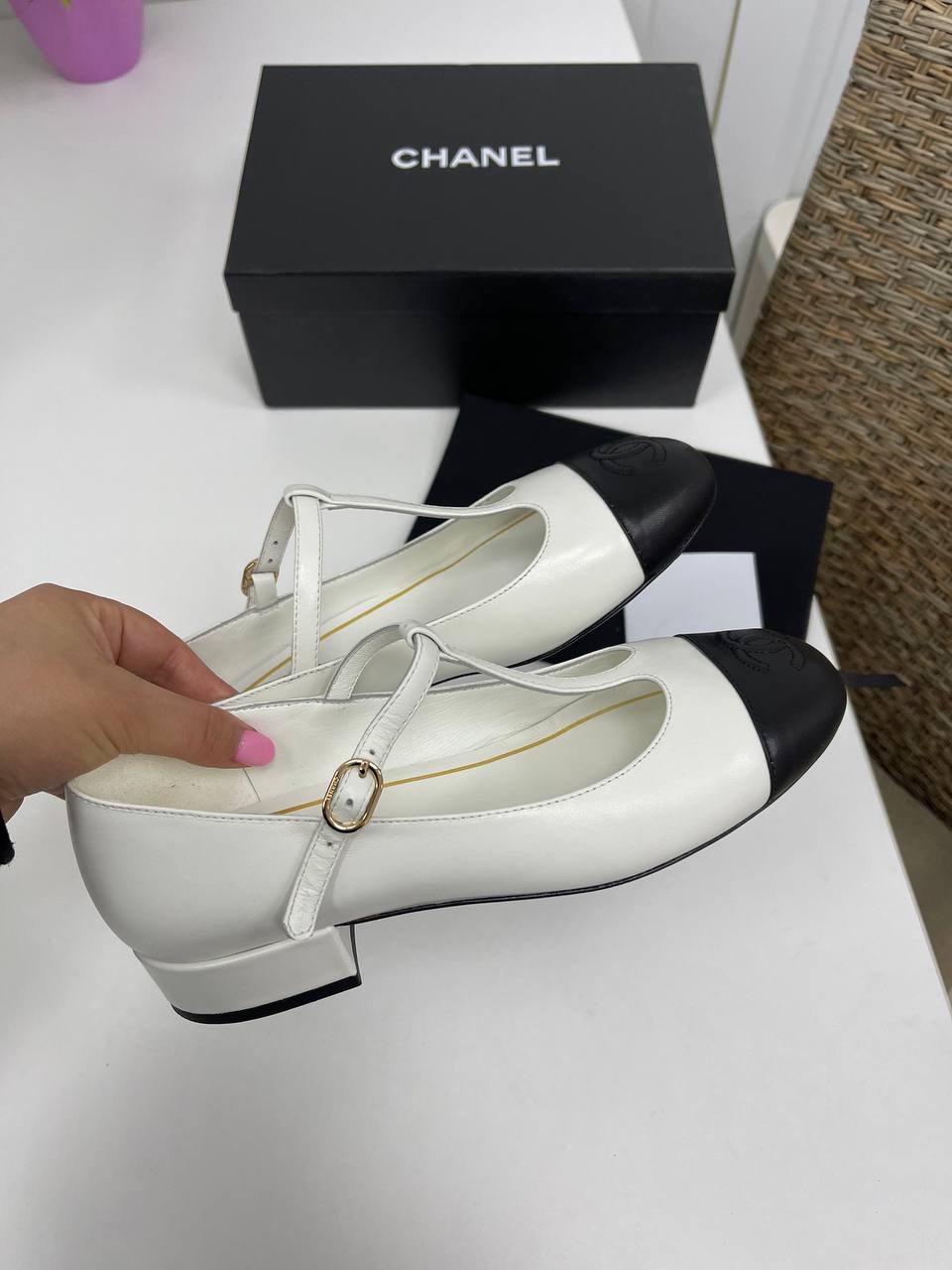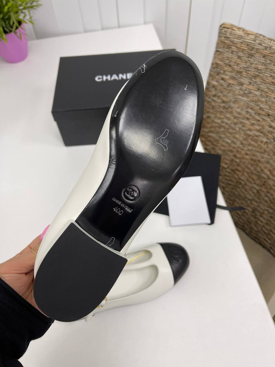 Туфли Chanel LUX-86077 — это воплощение элегантности и стиля. Классическая модель выполнена в бело-черной цветовой гамме с контрастным носком и аккуратным ремешком. Эти туфли станут прекрасным дополнением к любому образу, подчеркивая изысканный вкус своей обладательницы.