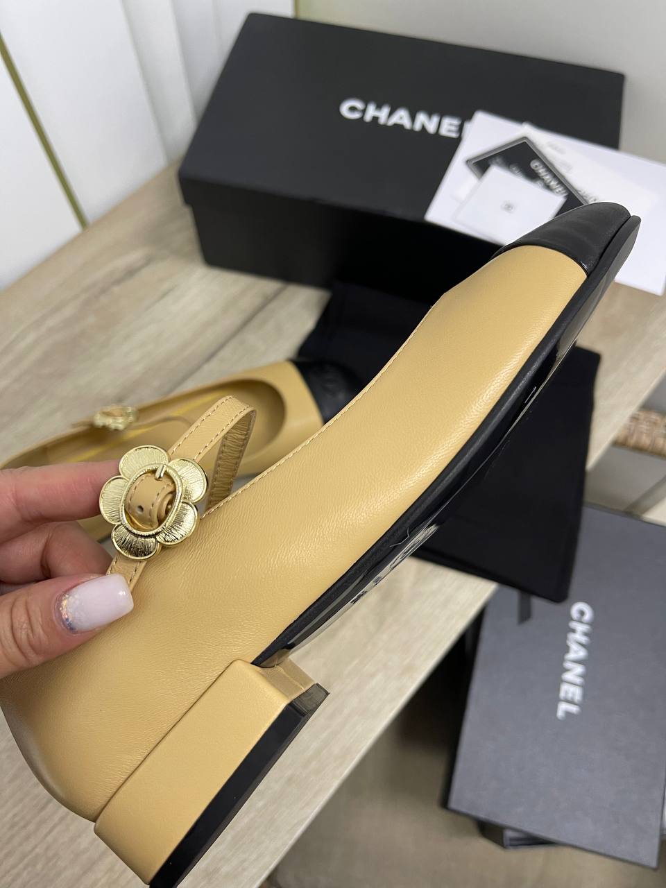 Туфли Chanel LUX-87330 – элегантная модель, сочетающая классический стиль и современный дизайн. Бежевые туфли с черным мыском, украшены золотистой пряжкой в форме цветка. Отлично подойдут для создания как повседневных, так и более формальных образов.