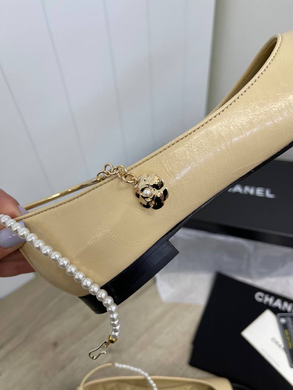 Туфли Chanel LUX-88150 — это элегантные балетки, сочетающие в себе классический стиль и современный шик. Эти туфли выполнены в кремовом цвете с черным мыском, создавая контрастный и узнаваемый образ. Они идеально подойдут для создания изысканных повседневных и вечерних нарядов.