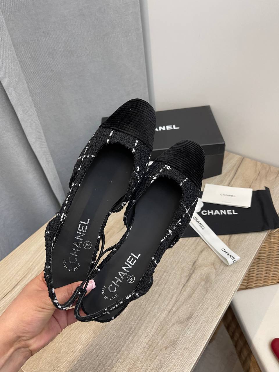 Туфли Chanel LUX-104919 представляют собой элегантные балетки в классическом стиле. Модель выполнена в черно-белой цветовой гамме с использованием текстурированного материала. Эта обувь идеально подходит для создания утонченных повседневных образов.