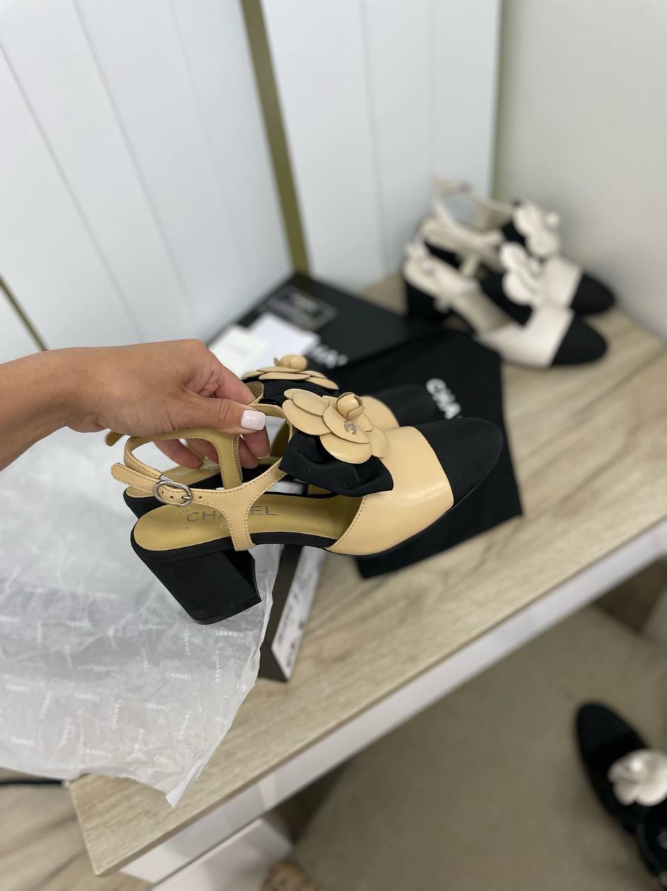 Туфли Chanel LUX-92703 — это изысканная обувь, сочетающая в себе элегантность и комфорт. Основные цвета изделия — бежевый, черный. Туфли имеют открытый задник, что делает их идеальными для теплых дней или вечерних выходов.