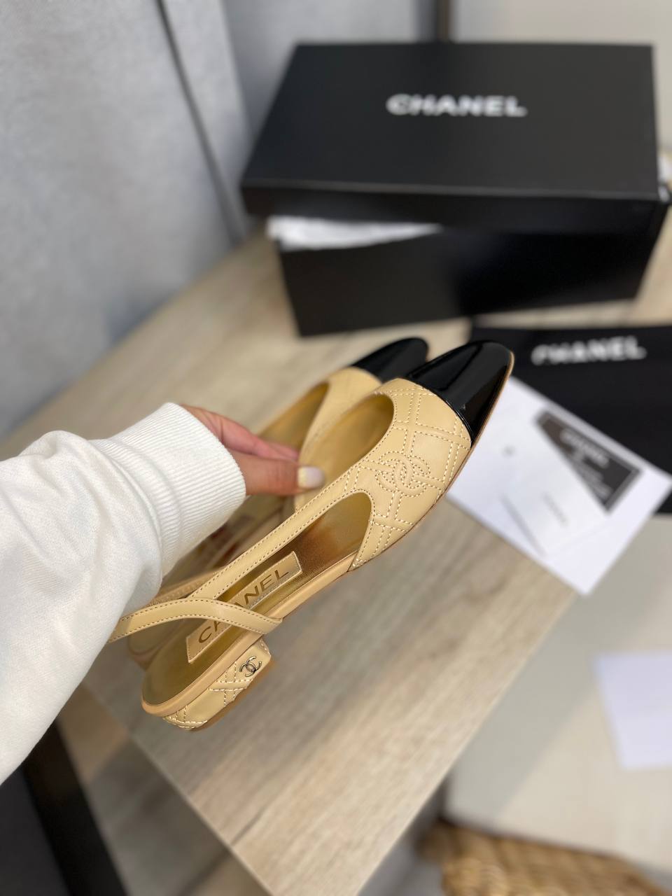 Туфли Chanel LUX-95944 — элегантная модель, сочетающая в себе классический стиль и современный дизайн. Бежевый цвет с черными вставками делает их универсальными для разных образов. Туфли предназначены для создания стильных и изысканных ансамблей.