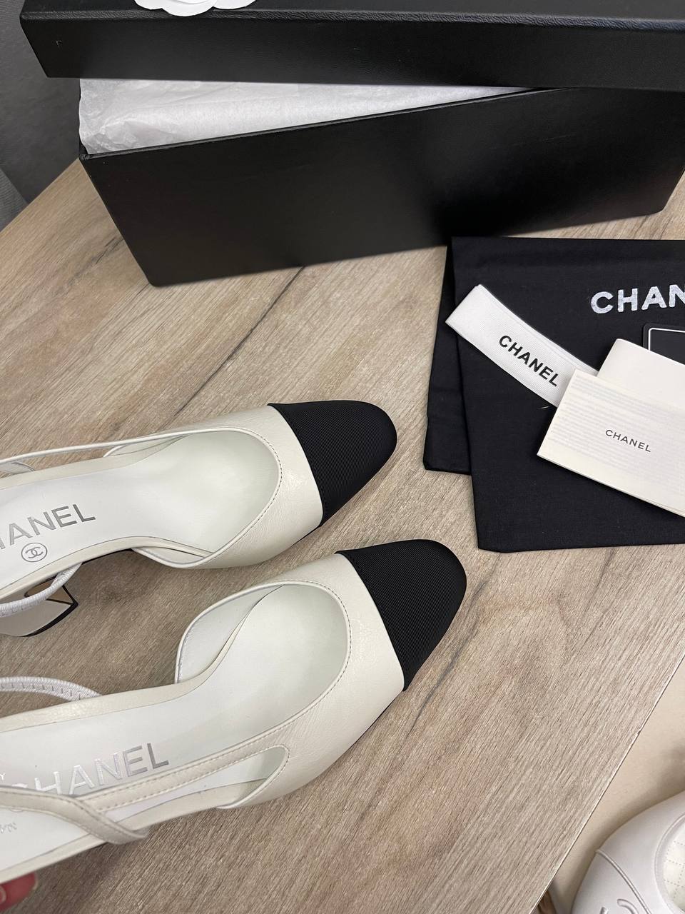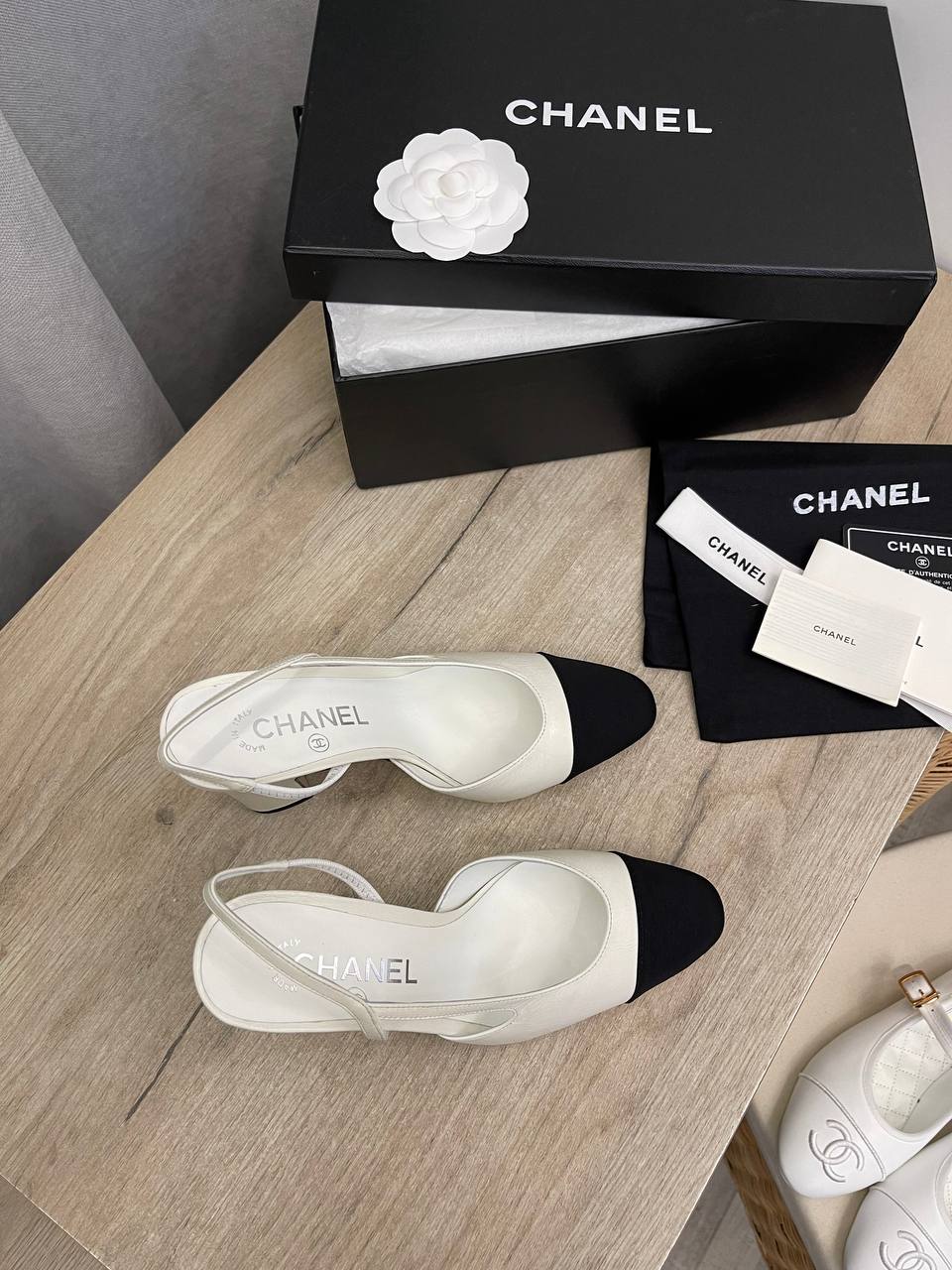 Туфли Chanel LUX-106070 представляют собой элегантную пару женской обуви. Эти туфли выполнены в классическом стиле с сочетанием двух цветов — белого и черного. Идеально подойдут для создания утонченных образов.