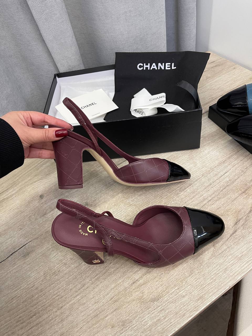 Туфли Chanel LUX-115347 - это элегантная модель в классическом стиле, воплощающая женственность и безупречный вкус. Сочетание бордового цвета с черным лакированным носком придает туфлям изысканный вид. Каблук средней высоты обеспечивает комфорт при ходьбе, делая их идеальным выбором для различных случаев.