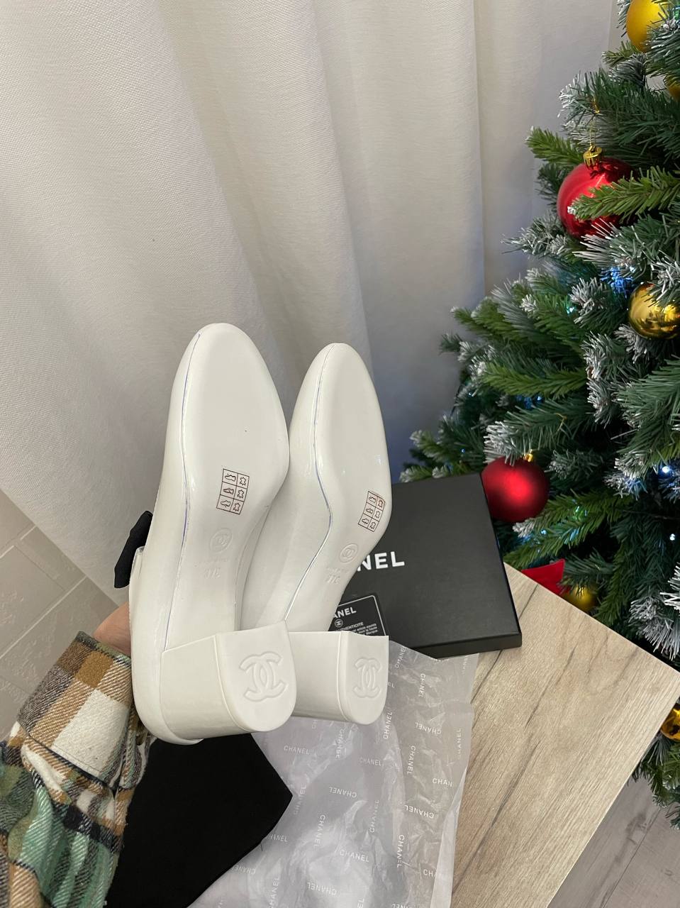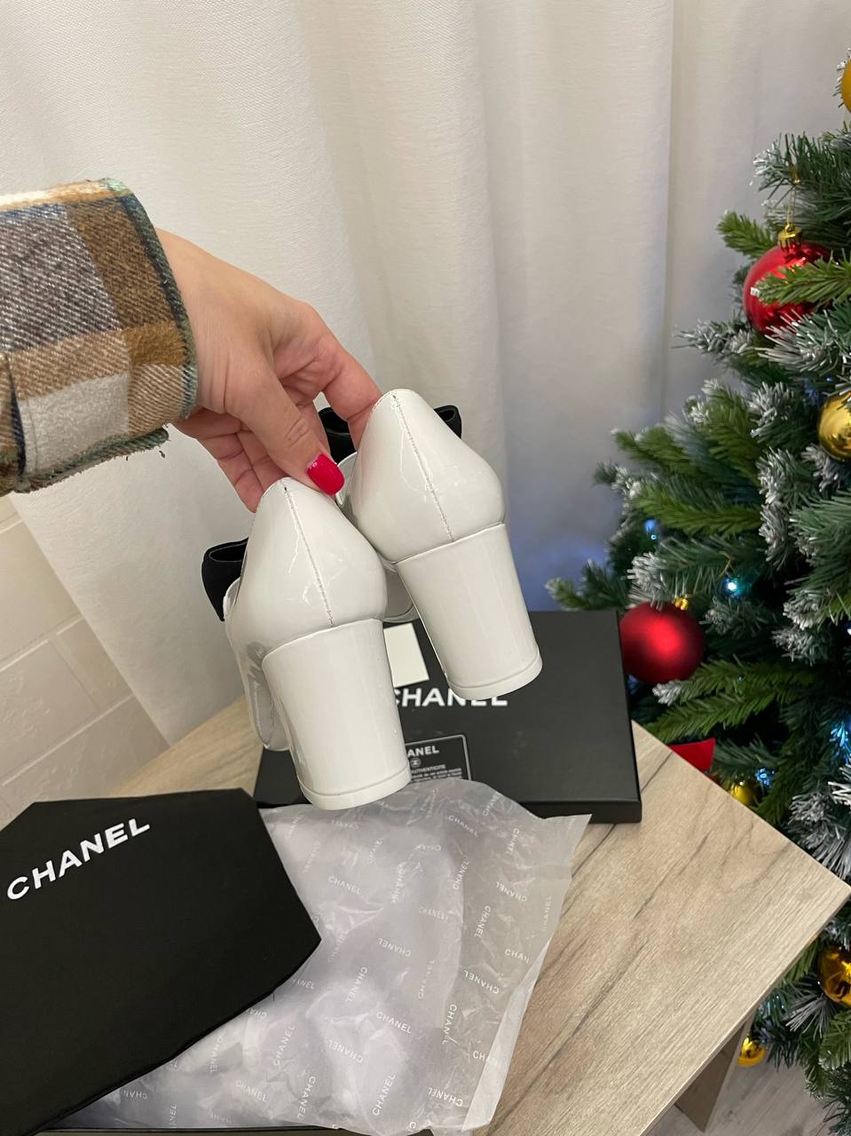 Туфли женские Chanel LUX-100092 – это элегантные туфли, выполненные в классическом стиле. Белый цвет придает им утонченность, а лаковый блеск делает их нарядными и привлекательными. Туфли станут прекрасным дополнением к любому образу, будь то деловой костюм или вечернее платье.