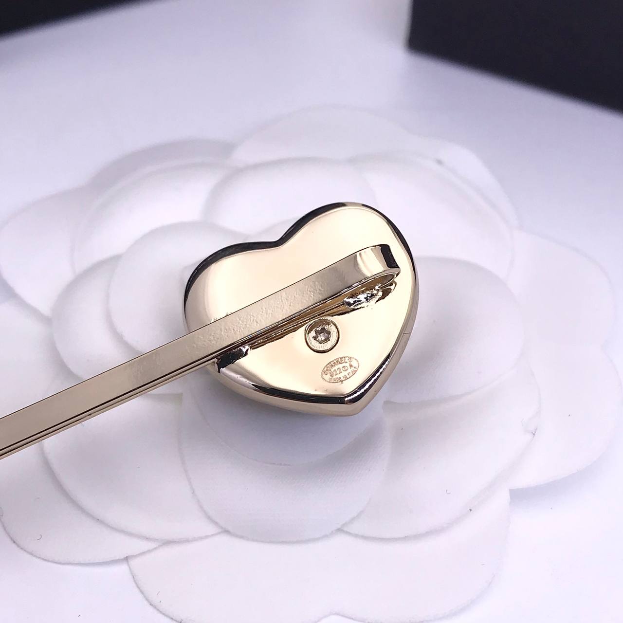 Заколка Chanel LUX-83091 – изысканный аксессуар, который придает образу женственность и элегантность. Заколка выполнена в виде сердца, декорирована логотипом бренда. Данная заколка станет прекрасным дополнением к любому стилю, подчеркивая индивидуальность своей обладательницы.
