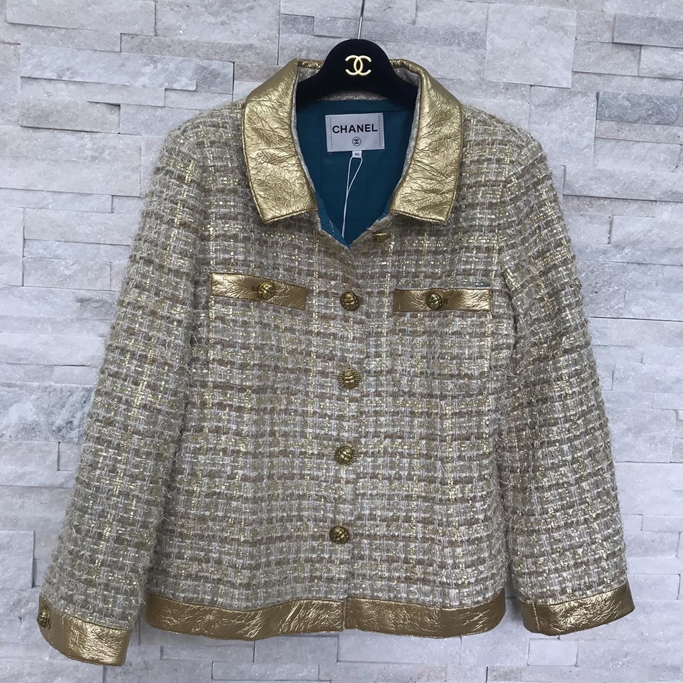 Этот элегантный жакет Chanel LUX-16806 представляет собой воплощение классического стиля и роскоши. Изделие выполнено в утонченном дизайне, сочетающем традиционный твидовый узор с акцентами из золотистой кожи. Жакет идеально подойдет для создания изысканных образов, добавляя нотку шика любому наряду.