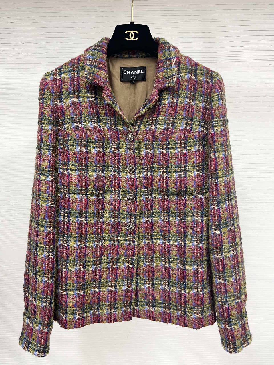 Жакет Chanel LUX-80439 — это стильный предмет гардероба от известного модного дома. Жакет выполнен в классическом стиле с воротником и застежкой на пуговицы. Яркая текстурированная ткань жакета имеет многоцветный узор, что придает ему элегантность и делает его подходящим для различных образов.