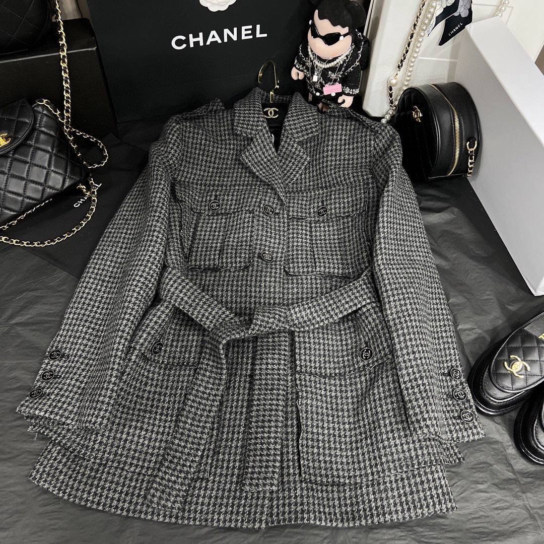 Жакет Chanel LUX-80448 — это элегантный предмет гардероба от известного бренда. Жакет выполнен в классическом стиле с узнаваемым дизайном в клетку. Его серый цвет создает универсальный образ, подходящий для различных случаев.
