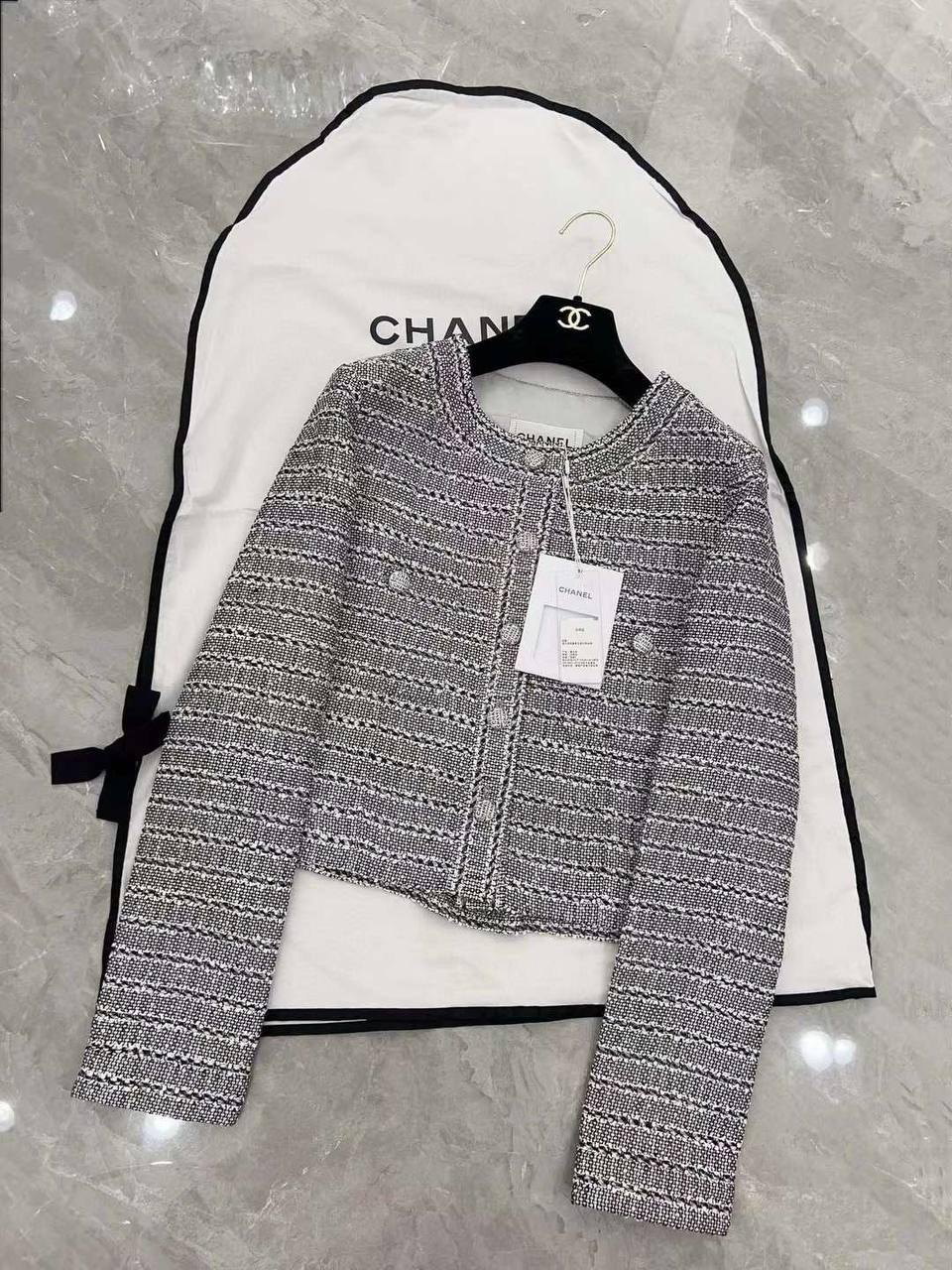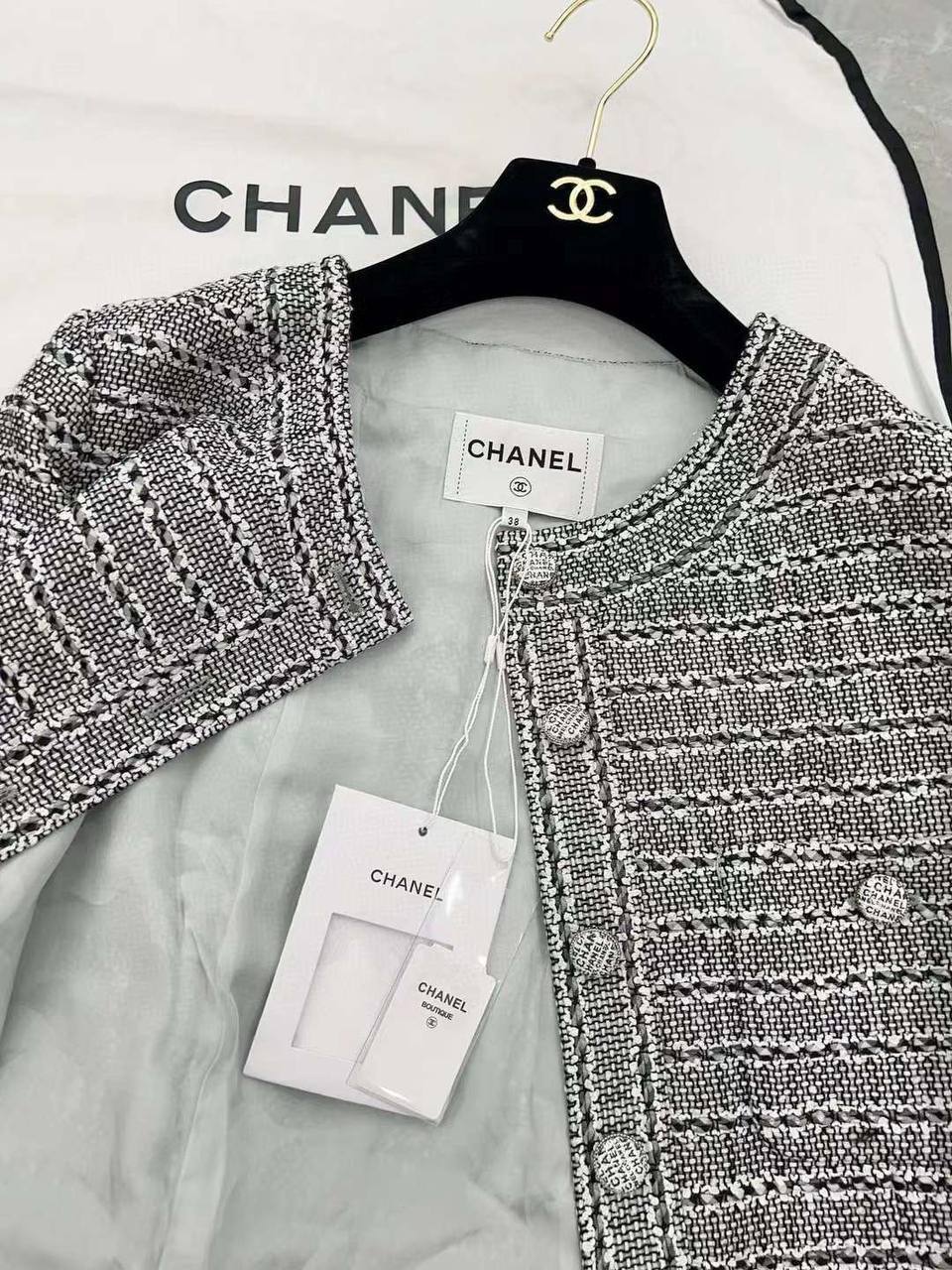 Жакет Chanel LUX-106053 – это классический предмет гардероба от известного бренда, который подчеркнет вашу элегантность и стиль. Жакет выполнен в классическом стиле, с круглым вырезом и укороченным кроем, который позволяет его легко сочетать с различными образами. Он имеет нейтральный серо-белый цвет, который подойдет для любого случая.
