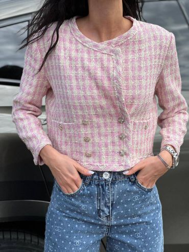 Жакет Chanel LUX-90659 представляет собой элегантный предмет гардероба в классическом стиле. Жакет выполнен в нежно-бирюзовом и белом цветах с текстурным плетением. Идеален для создания как повседневных, так и более формальных образов.