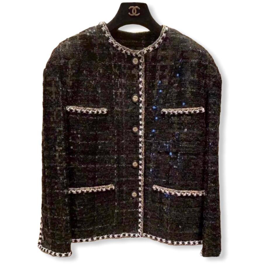 Этот жакет Chanel LUX-53237 представляет собой изысканное творение в классическом стиле, идеально подходящее для элегантных образов. Его отличительной чертой является уникальное переплетение нитей и мерцающие вставки, придающие изделию роскошный вид. Жакет прекрасно подойдет для создания как деловых, так и вечерних ансамблей.