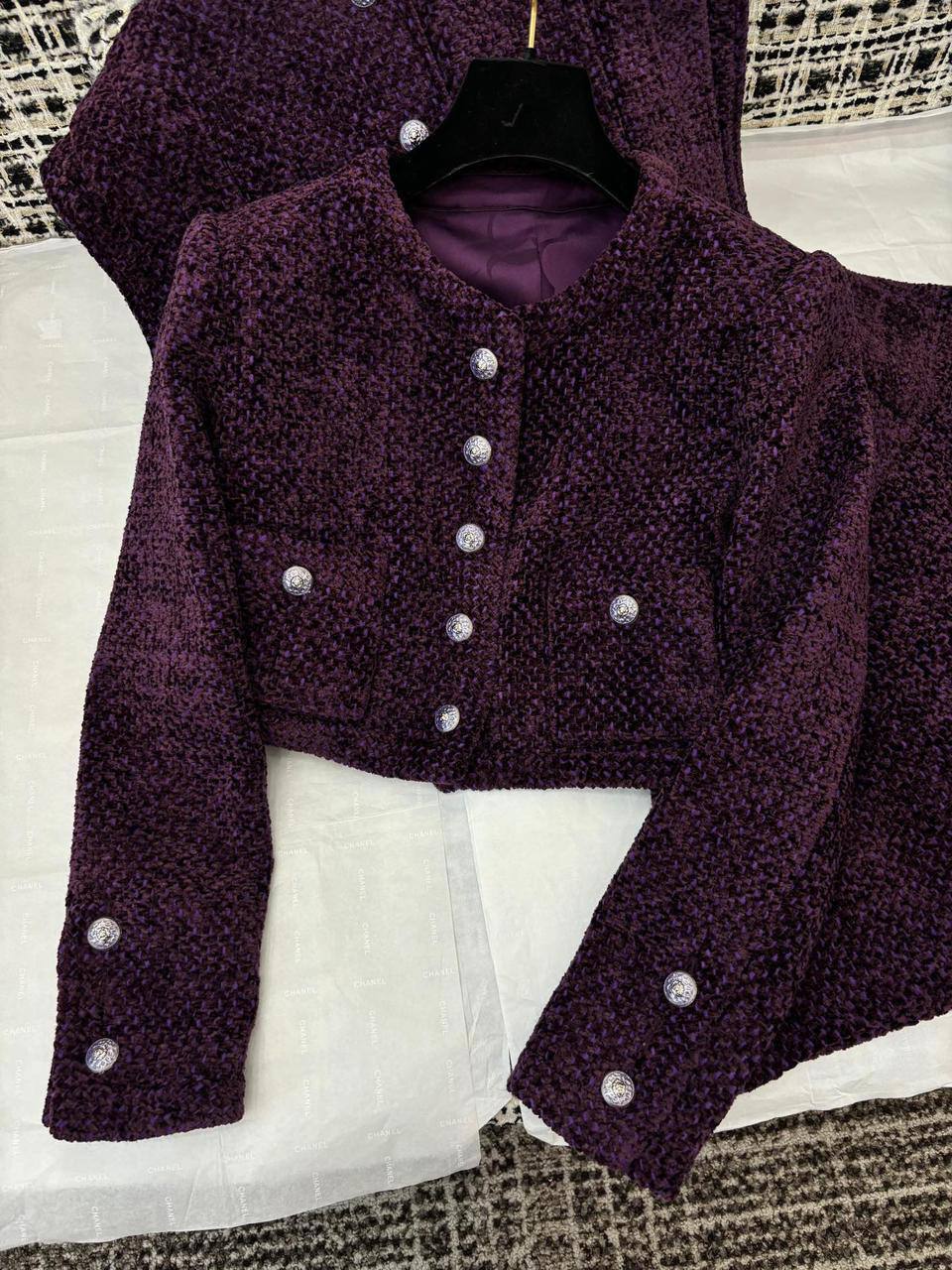 Жакет Chanel LUX-113899 — это изысканный предмет гардероба, который олицетворяет стиль и элегантность бренда. Жакет глубокого фиолетового цвета, имеет выразительную текстуру и аккуратный крой. Он может стать прекрасным дополнением к вечернему образу или добавить изысканности в повседневный стиль.