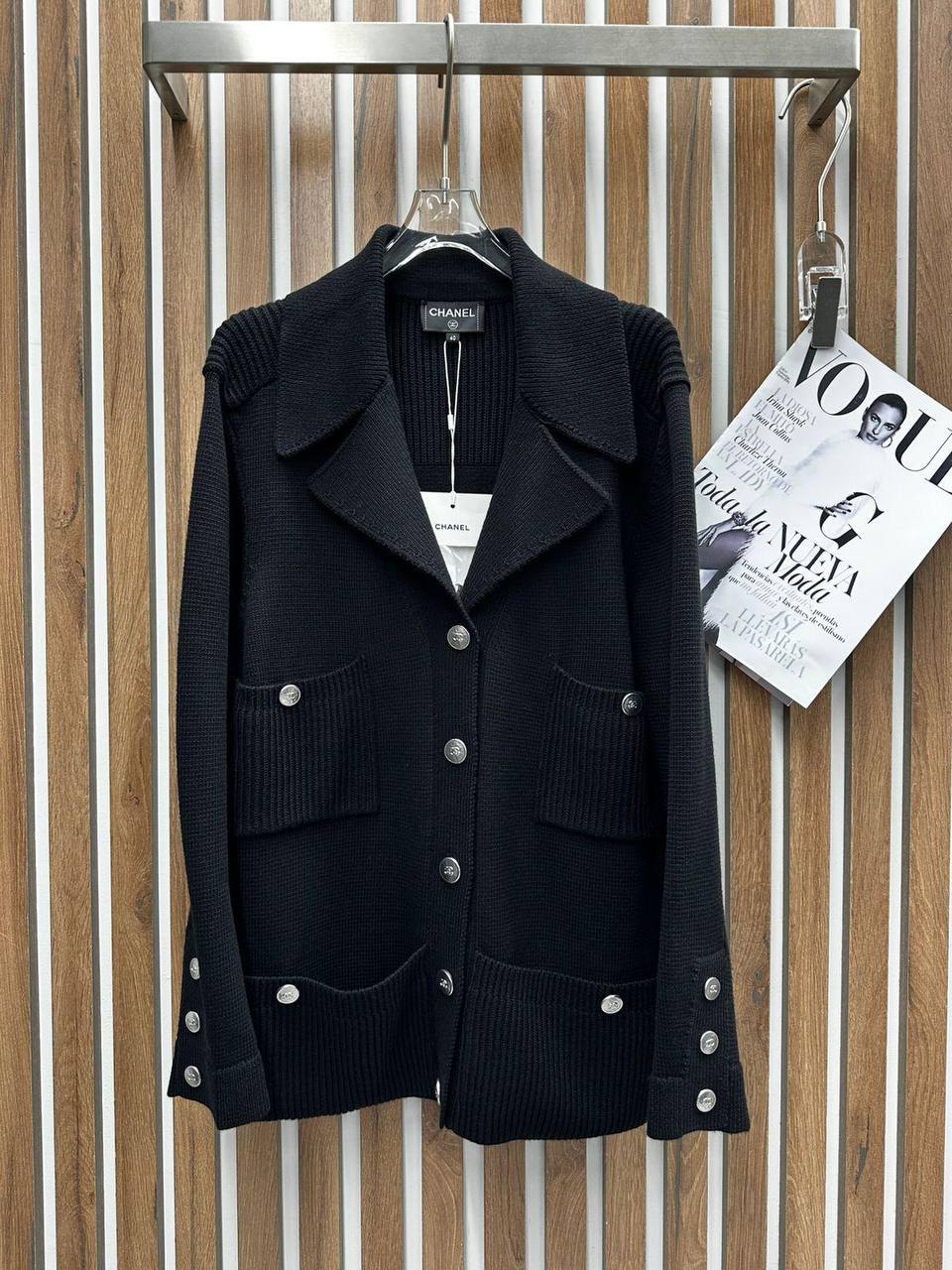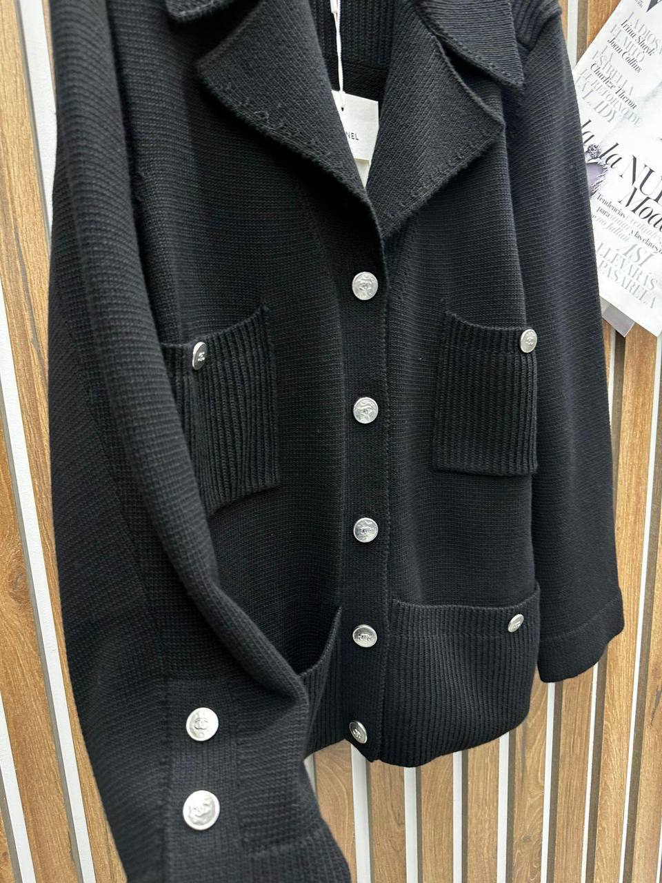 Этот стильный жакет Chanel станет прекрасным дополнением к вашему гардеробу, подчёркивая элегантность и изысканность образа. Он идеально подойдет для создания утонченных повседневных и вечерних ансамблей.