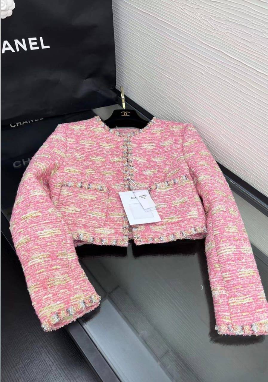 Жакет Chanel LUX-85579 представляет собой элегантный предмет гардероба от известного бренда. Этот жакет выполнен в классическом стиле, сочетая в себе розовые оттенки с золотистыми и серыми акцентами, создавая изысканный образ. Текстура ткани жакета придает ему уникальный вид и подходит для различных образов.
