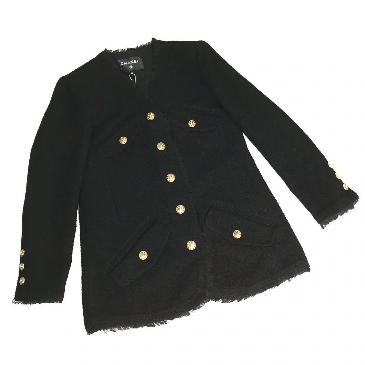 Этот элегантный черный женский жакет Chanel LUX-35731 выполнен в классическом стиле бренда, идеально подходит для создания изысканных образов. Его лаконичный дизайн подчеркивается золотистыми пуговицами и бахромой по краям, что придает изделию особый шарм. Жакет легко впишется как в деловой, так и в повседневный гардероб, добавляя ему утонченности.