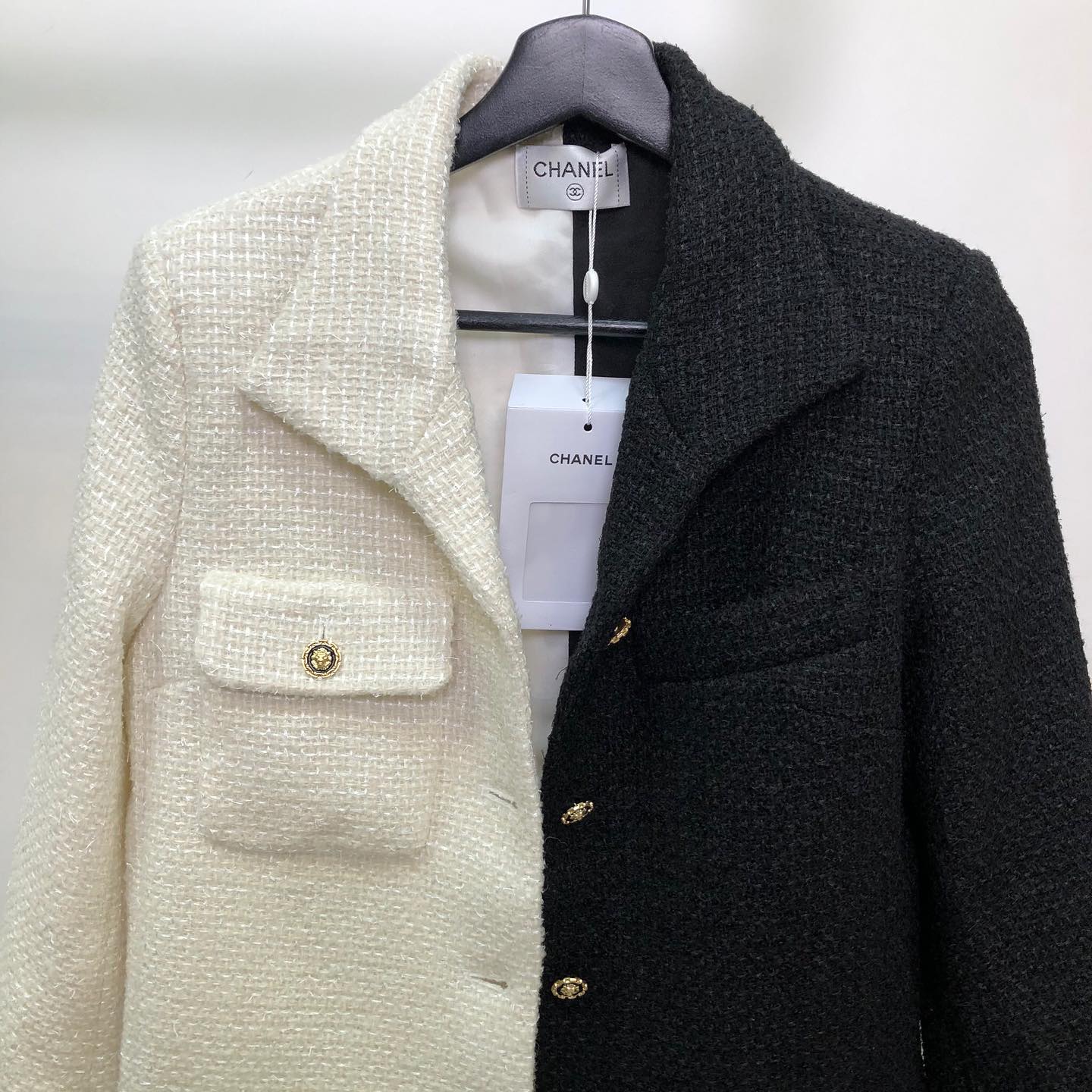 Эффектный женский жакет Chanel LUX-36968 представлен в оригинальном дизайне, где одна половина выполнена в классическом черном цвете, а другая – в нежном кремовом. Этот жакет сочетает в себе элегантность и современный стиль, идеально подходит для создания изысканных образов.