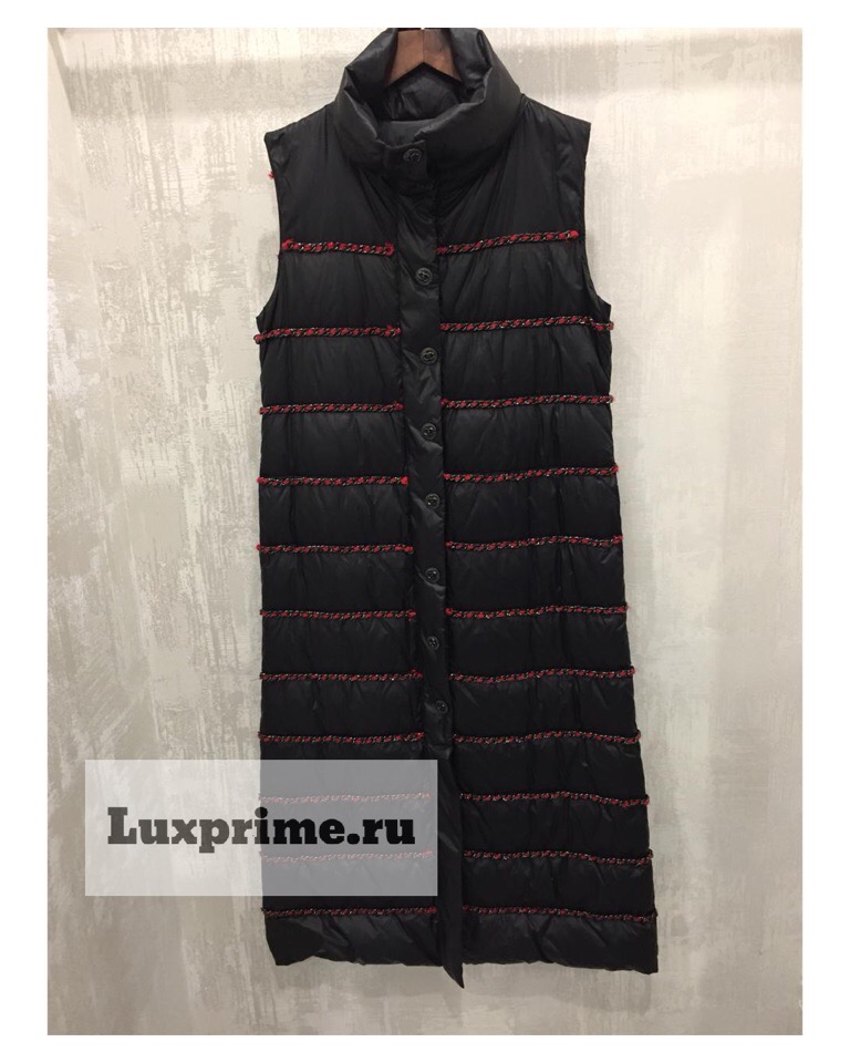 Жилет Chanel ОДЖ-1067 представляет собой элегантное дополнение к гардеробу, выполненное в классическом черном цвете. Дизайн модели подчеркивается декоративными элементами в виде красной тесьмы, расположенной горизонтальными полосами по всей длине изделия. Воротник-стойка и пуговицы в тон создают завершенный и стильный образ. Этот жилет прекрасно подходит для создания многослойных ансамблей, добавляя изысканности любому наряду.