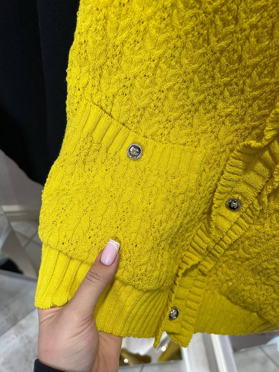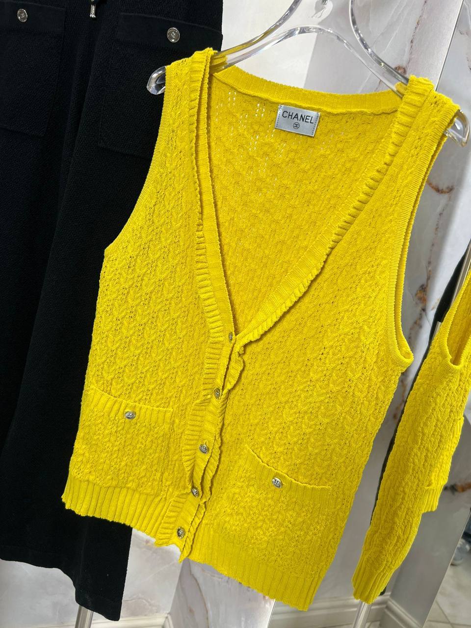 Жилет Chanel LUX-116819 представляет собой стильный предмет гардероба, который идеально подойдет для создания элегантных образов. Жилет ярко-желтого цвета, с оригинальной текстурой вязки и круглыми пуговицами с логотипом бренда. Этот жилет станет отличным дополнением к любому образу, придавая ему изысканность и шарм.