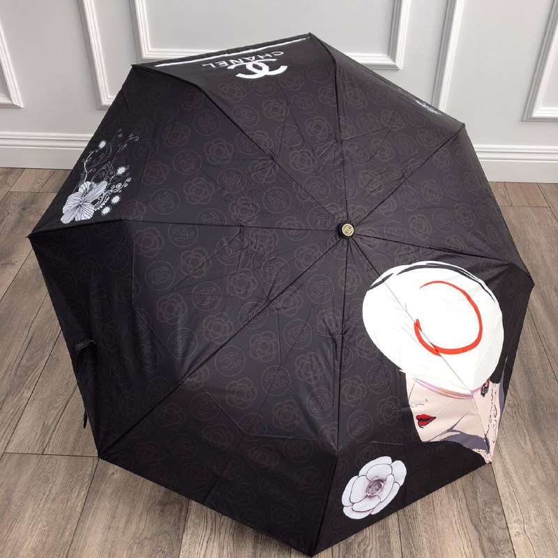 Этот зонт Chanel LUX-53395 представляет собой стильный и элегантный аксессуар. Черный зонт украшен узнаваемым логотипом бренда Chanel, повторяющимся узором из камелий и изысканным принтом женского профиля в шляпе. Его дизайн сочетает классическую эстетику с современными элементами, делая его идеальным дополнением к любому образу.