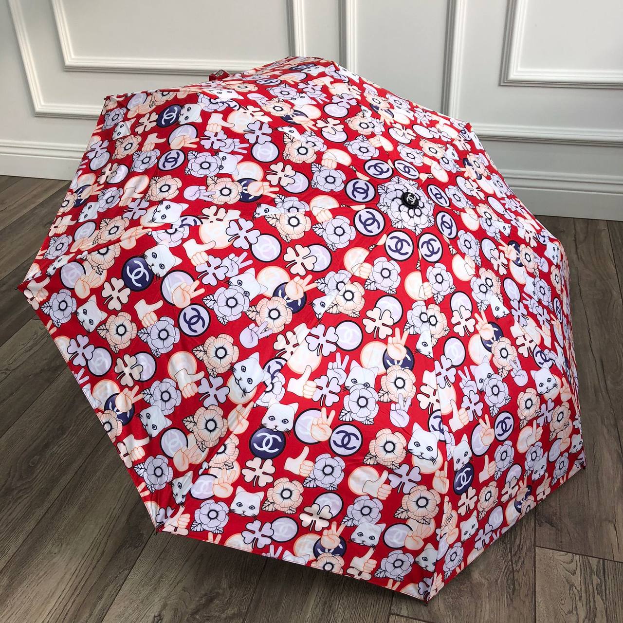 Этот зонт Chanel LUX-56001 является стильным и ярким аксессуаром, который добавит красок в дождливый день. Его оригинальный дизайн с принтом в виде милых котиков, цветов и узнаваемых логотипов Chanel делает его заметным. Этот зонт станет прекрасным дополнением к повседневному образу, подчеркивая индивидуальность владельца.