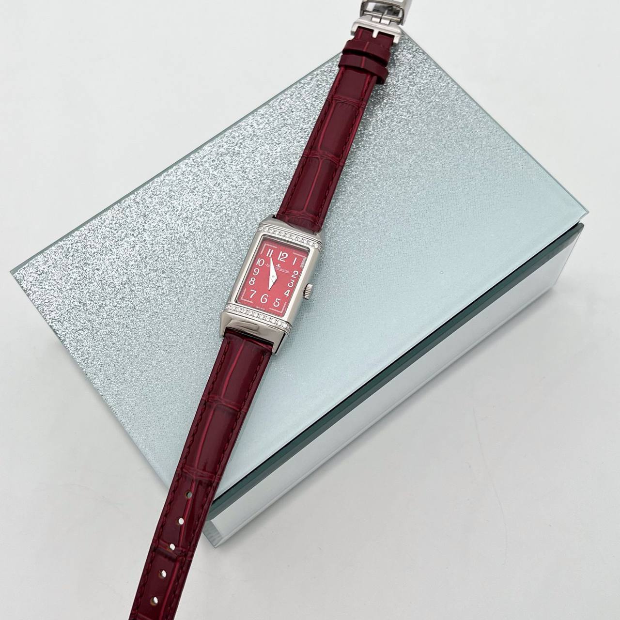 Часы Jaeger-LeCoultre LUX-102991 – это элегантные наручные часы, выполненные в классическом стиле. Часы имеют прямоугольный корпус серебристого цвета с красным циферблатом, инкрустированы стразами и дополнены ремешком бордового цвета. Они идеально подойдут для повседневного использования и для особых случаев.
