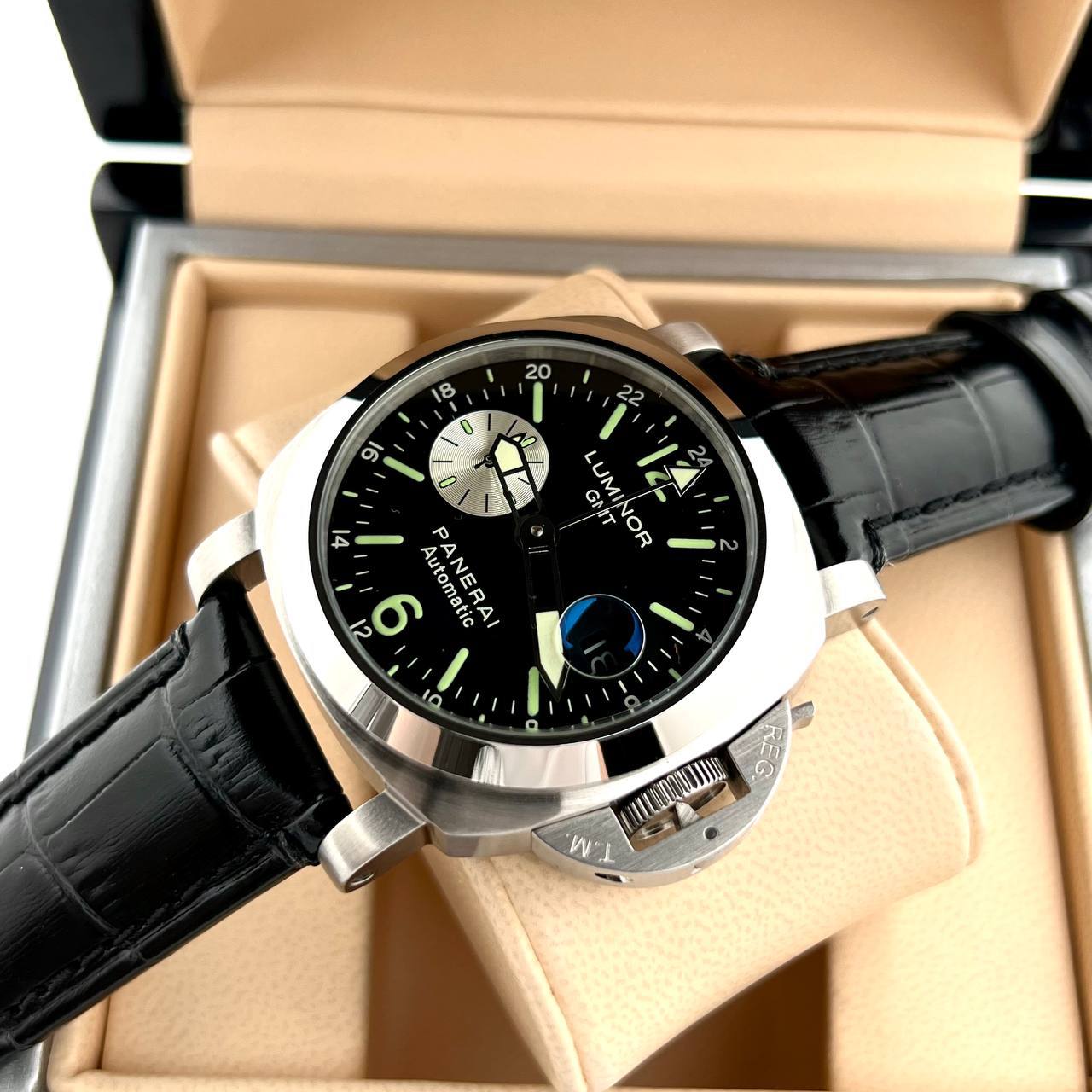 Часы Panerai Luminor (LUX-91771) — воплощение роскоши и элегантности. Данная модель выполнена в классическом стиле с узнаваемым дизайном. Часы имеют черный циферблат с контрастными метками и черный ремешок.