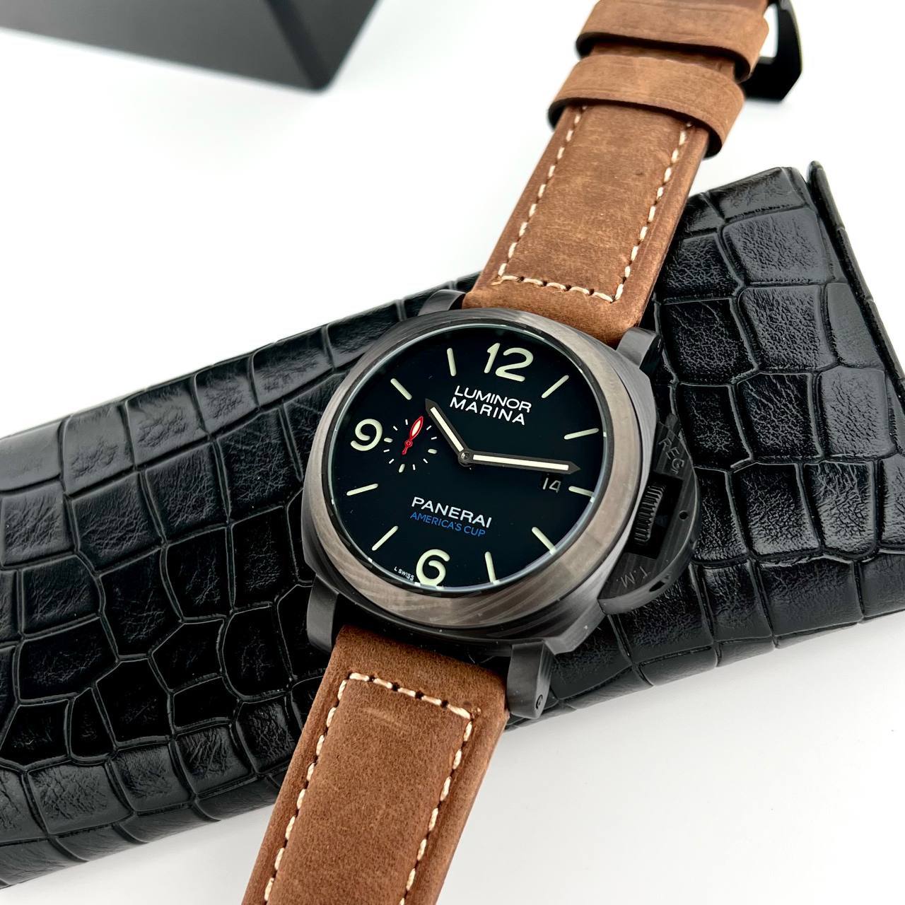 Часы Panerai Lumior LUX-86446 – это элегантный аксессуар, который подчеркнет ваш стиль. Часы выполнены в классическом стиле с современными элементами дизайна. Данная модель выполнена в черном корпусе и коричневом ремешке.