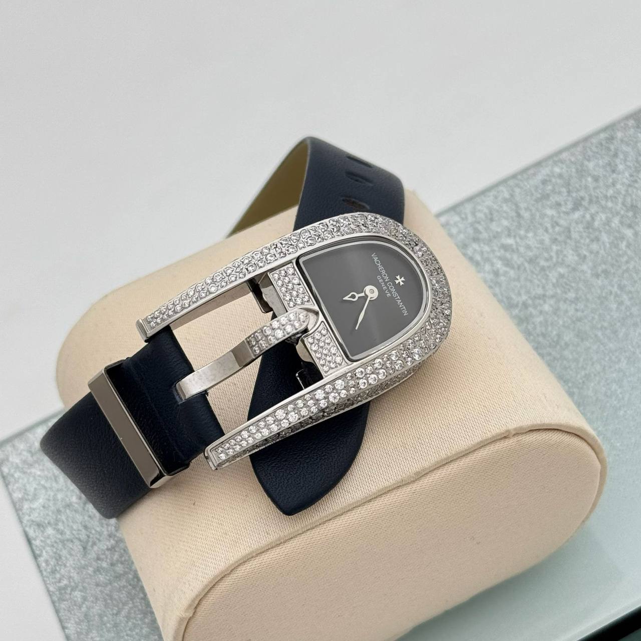 Часы Vacheron Constantin LUX-118846 — это элегантный аксессуар, который подчеркнет ваш стиль и статус. Эти часы выполнены в классическом стиле, сочетая в себе утонченность и роскошь. Темно-синий ремешок контрастирует с черным циферблатом, а корпус украшен кристаллами, придавая часам изысканный вид.