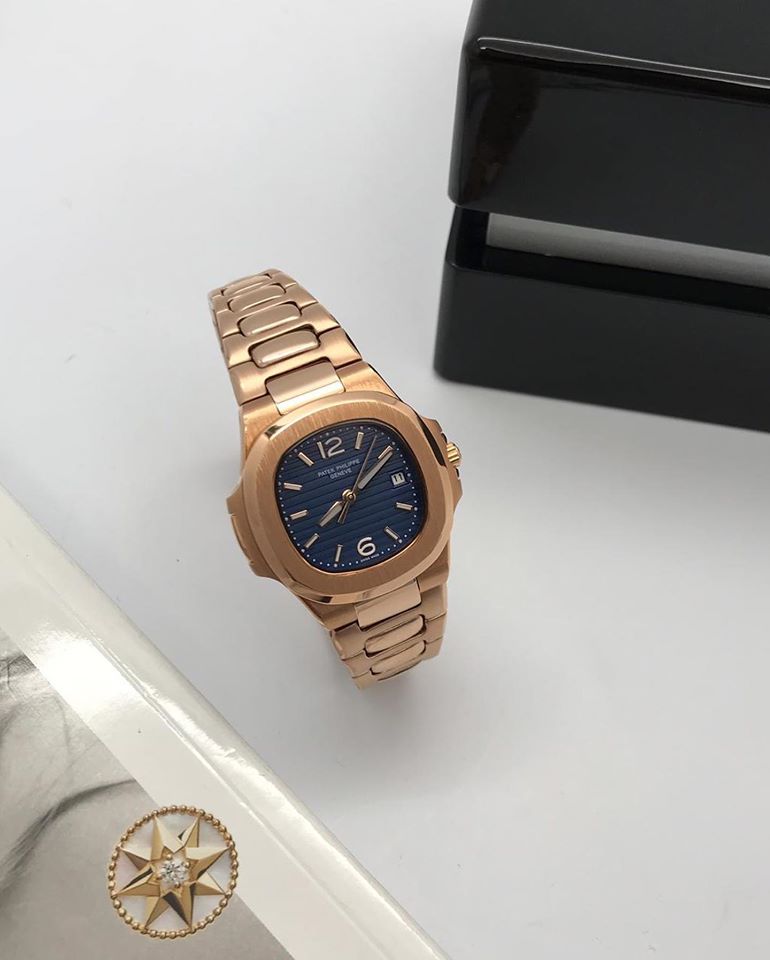 Эти стильные женские часы LUX-28106 от Patek Philippe Geneve станут элегантным дополнением к вашему образу. Корпус и браслет из розового золота придают им роскошный вид, а синий циферблат с индикаторами времени и датой добавляет изысканности.