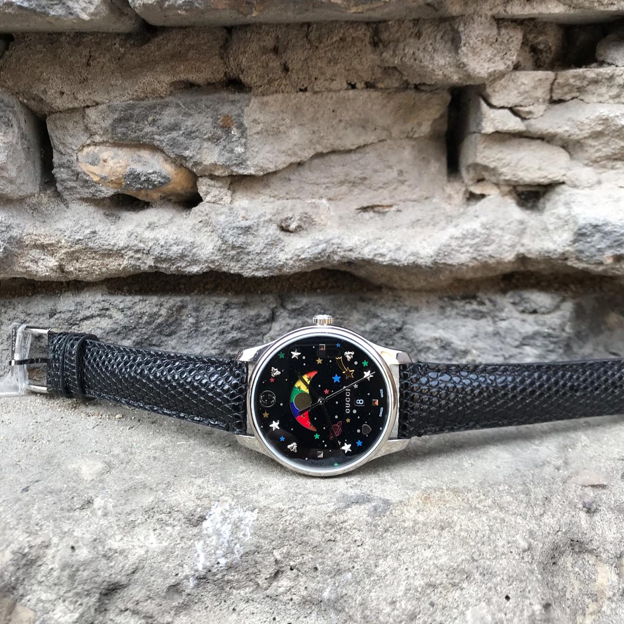 Часы женские Gucci АКС-195 — это стильный аксессуар, подчеркивающий индивидуальность. Дизайн циферблата выполнен в космической тематике с яркими элементами, что придает часам оригинальный вид. Эта модель идеально подойдет для современных женщин, ценящих экстравагантность и высокое качество.