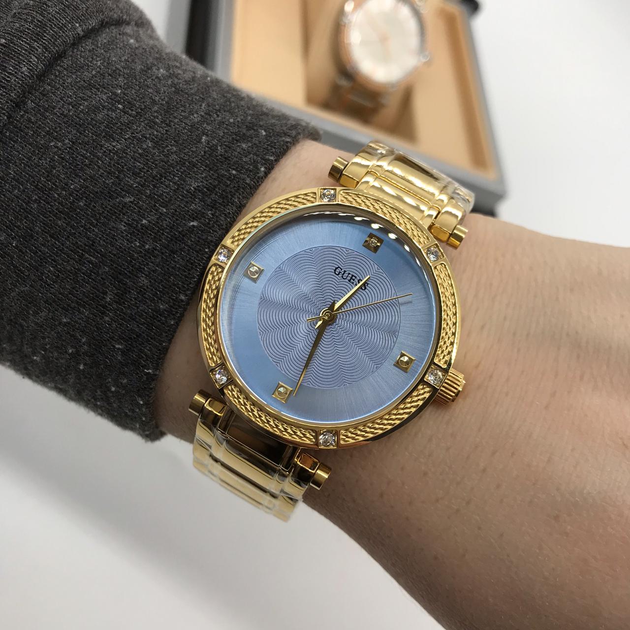 Часы женские Guess LUX-11171 – это элегантный аксессуар, который прекрасно дополнит ваш образ. Дизайн часов выполнен в классическом стиле, с утонченными деталями, подчеркивающими женственность. Золотистый корпус и браслет придают часам роскошный вид, а синий циферблат с кристаллами в качестве индексов добавляет изысканности.