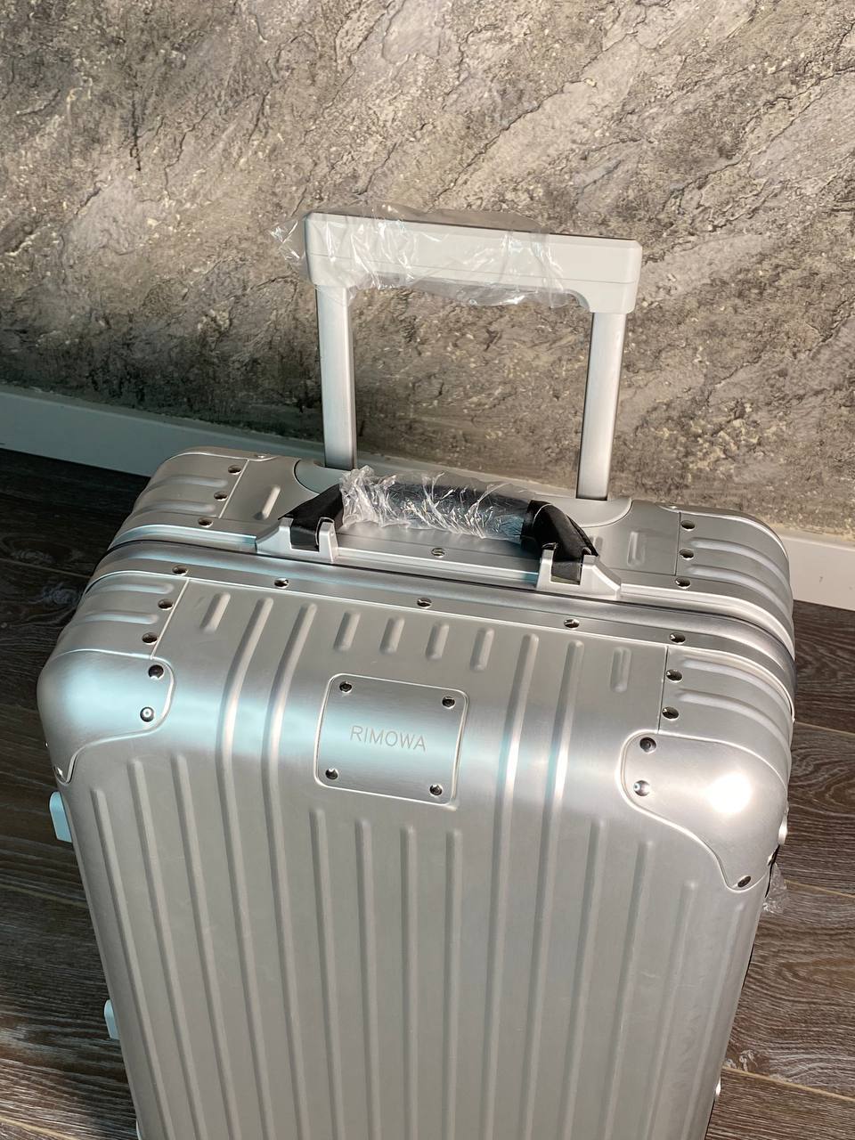 Чемодан Rimowa, модель LUX-116003, представляет собой стильный и функциональный аксессуар для путешествий. Серебристый цвет, металлический корпус с узнаваемым рифленым дизайном. Чемодан предназначен для комфортной перевозки багажа, обеспечивая защиту содержимого.