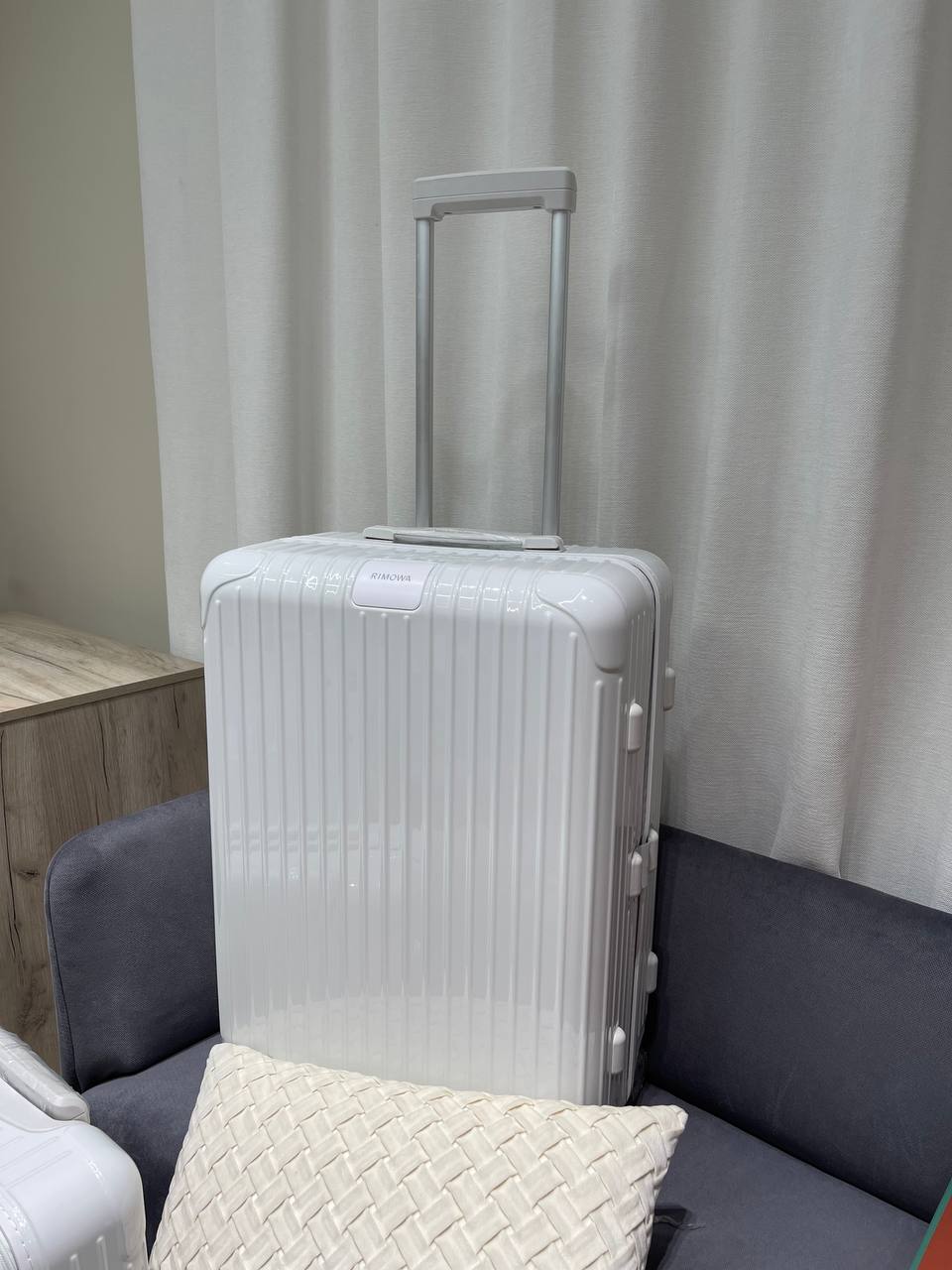 Чемодан Rimowa (LUX-119689) — это стильный чемодан, который выполнен в белом цвете. Его текстура имеет узнаваемые полоски, которые придают изделию элегантный вид. Чемодан предназначен для путешествий и обеспечивает комфорт при транспортировке вещей.